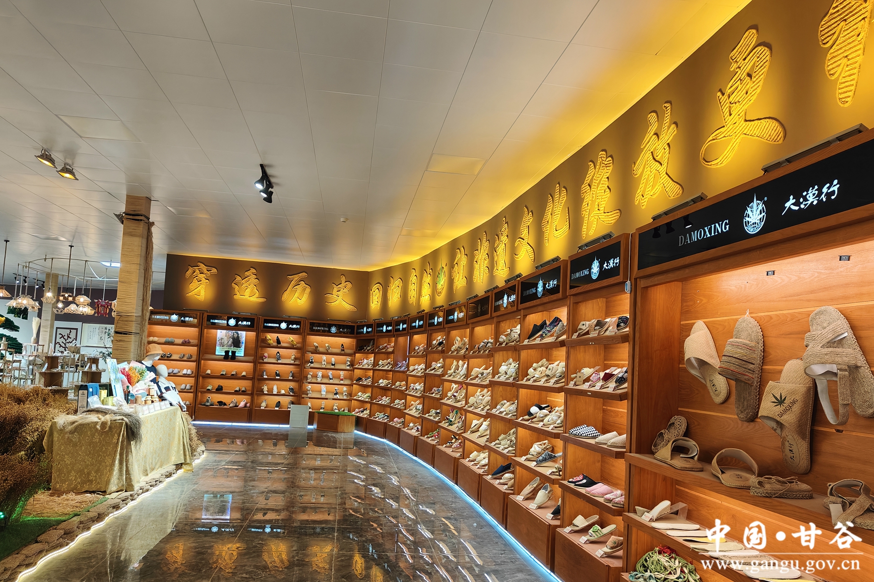 在甘谷县亚麻博物馆内陈列的麻鞋形式多样,有的仍保留着传统的工艺设计,如麻凉鞋、麻拖鞋;有的时尚现代,比如精美的女士凉鞋,绵软舒适的运动鞋等原生态的产品。其主要产品还有休闲鞋、职业鞋等各种鞋类及床上用品、衣服、帽、包、坐垫等1000多个花色品种,形成了以大青麻为主要原材料的系列化产品。