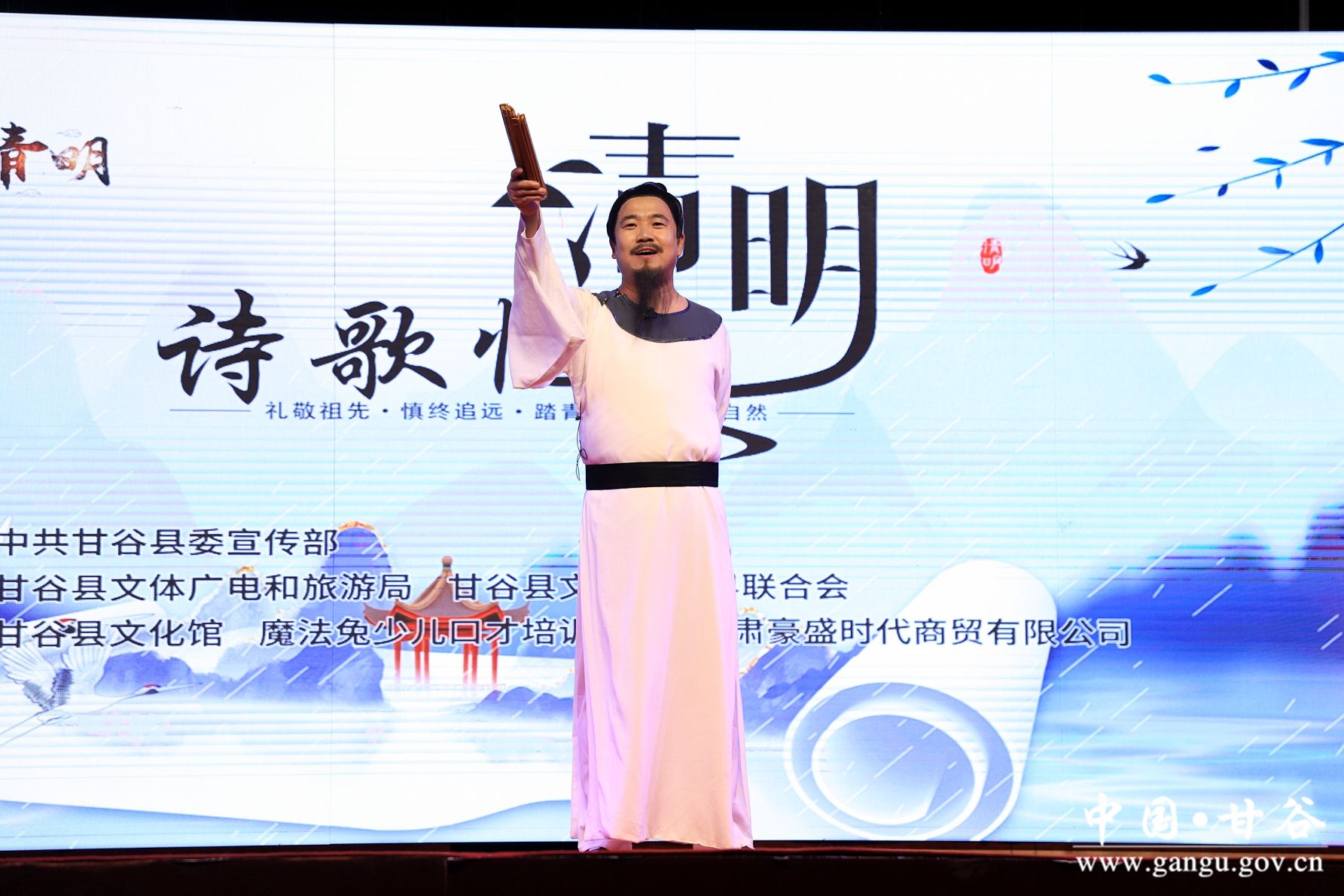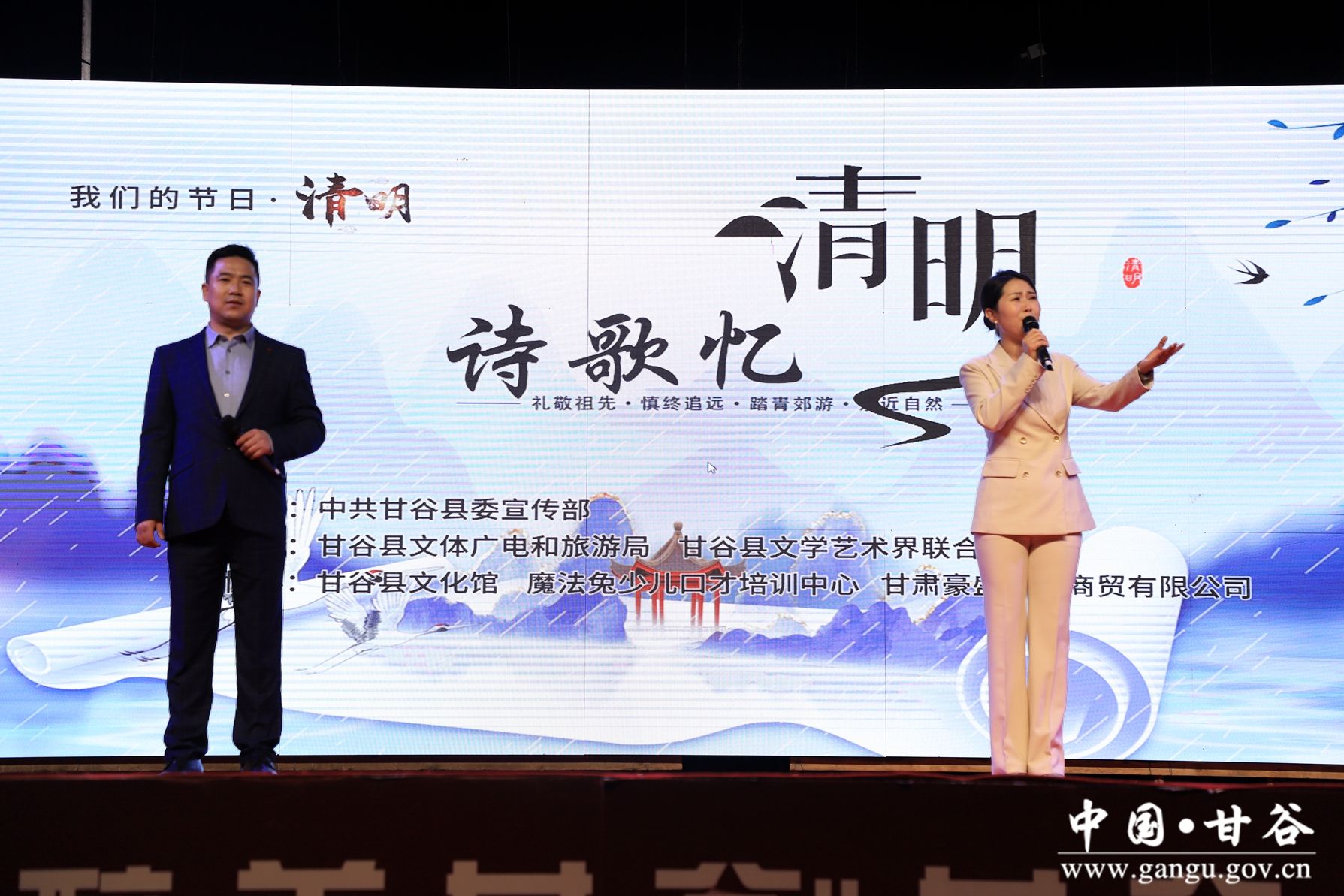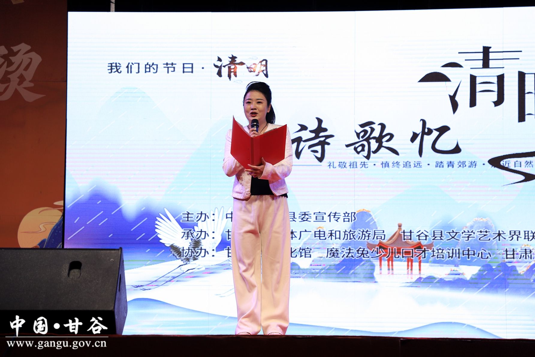 新甘谷讯【记者 何乐】“清明时节雨纷纷,路上行人欲断魂。”“风落梨花雪满庭,今年又是一清明。”在清明节来临之际,3月31日晚,甘谷县举行“诗歌忆清明”经典诵读活动,通过优美的诗歌华章忆清明、过清明,传承我国的优秀传统文化。