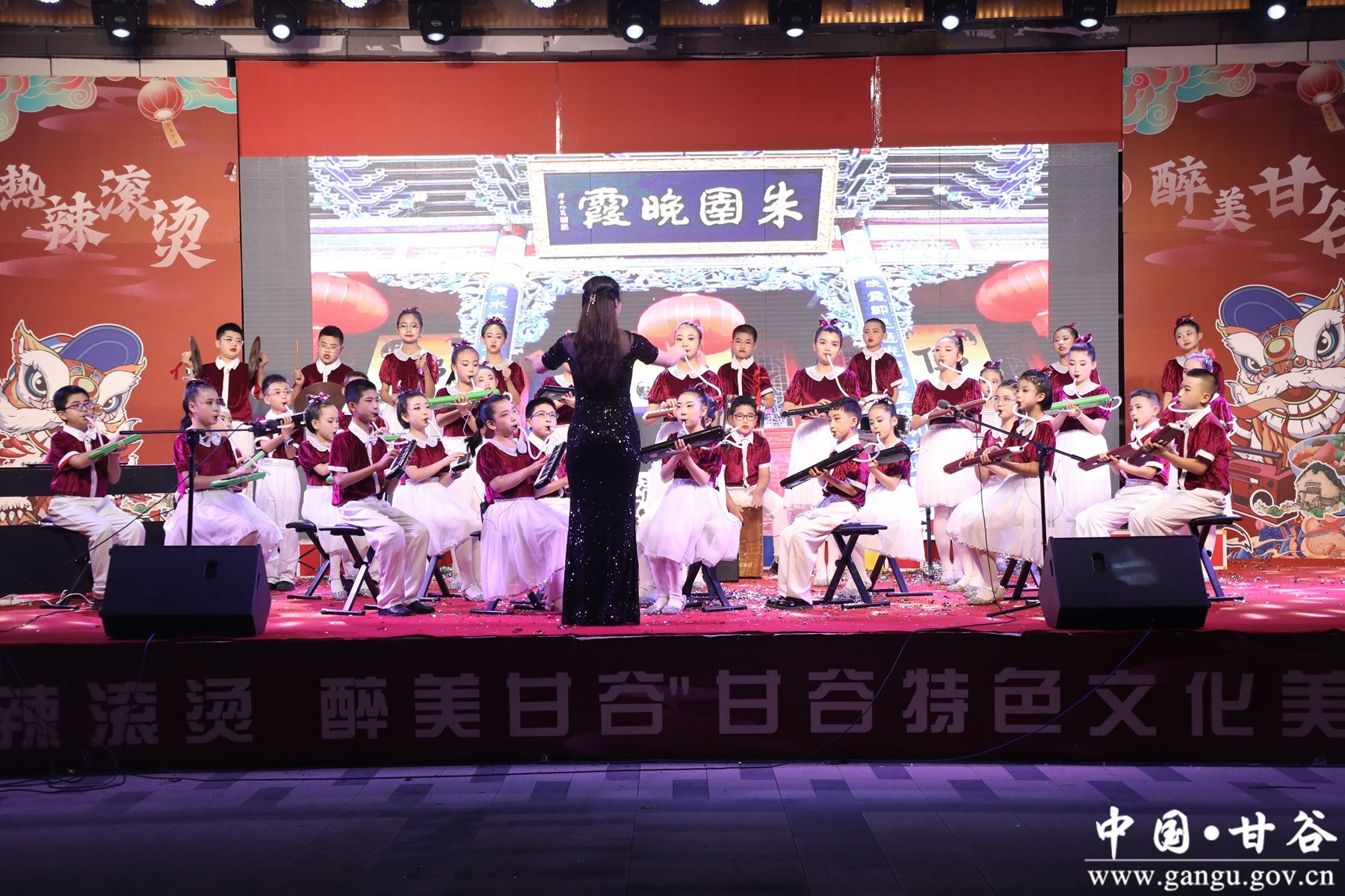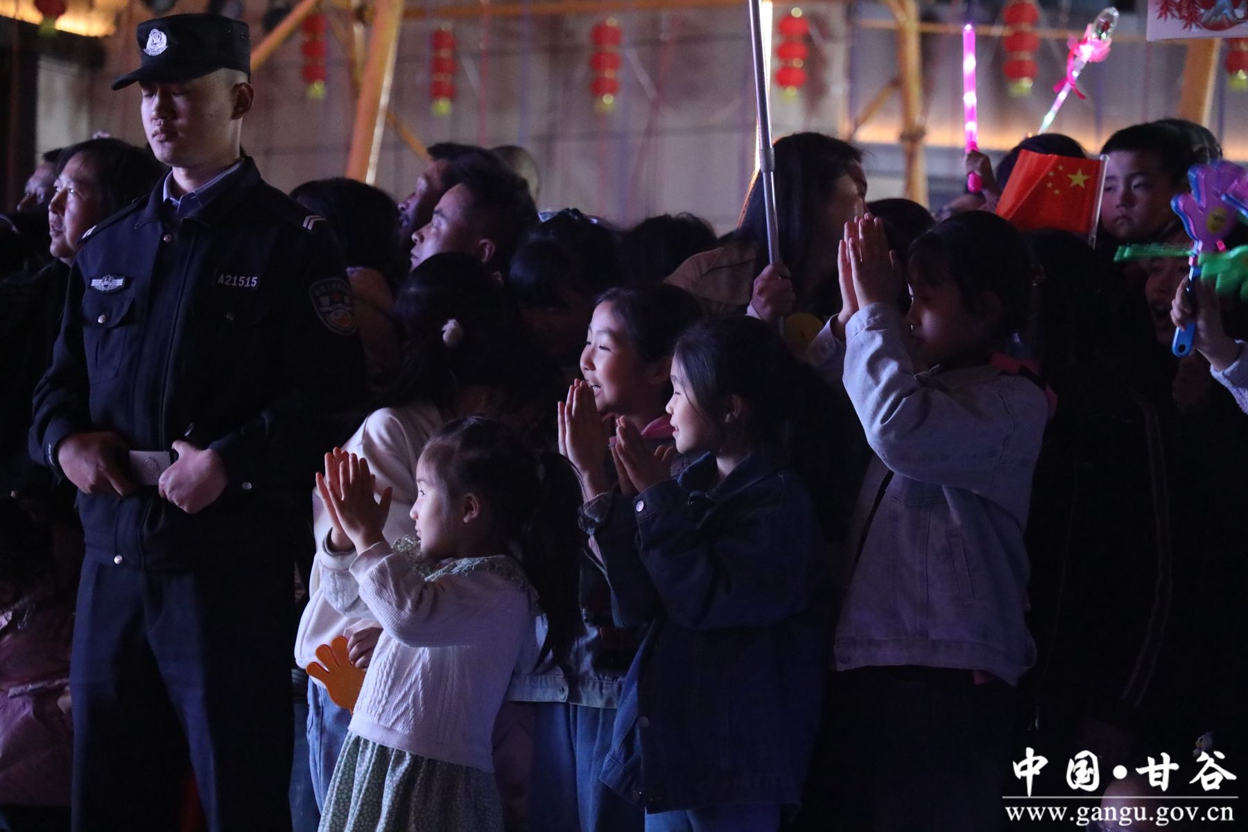 整场演出充分融合甘谷地域特色和陇原风情,编排巧妙,亮点不断,开场的舞狮和架子鼓表演更是一时间点燃了全场观众的热情,富有节奏的鼓点,铿锵有力的呐喊,充分展示出甘谷人豪放热情、朴实真诚的精神风貌。随后,男女声独唱、器乐合奏、舞蹈、快板、杂技、魔术、武术等二十多个精彩纷呈的节目一一上演。