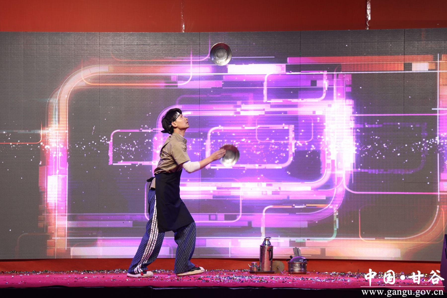 接下来,还有甘肃省杂技团、国家二级演员常亚辉带来的杂技盛宴,转碟、顶壶、抛勺,高超娴熟的技法的搭配轻快活泼的步伐,生动展现出厨师的“趣味”日常,把观众们逗得哈哈大笑;甘肃魔术联盟主席孙志炜近距离与现场观众互动,空手献花、鸽子幻术、餐桌悬浮,任何物品在他手中都变得变化莫测,强烈的视觉冲击赢得了现场观众阵阵掌声。