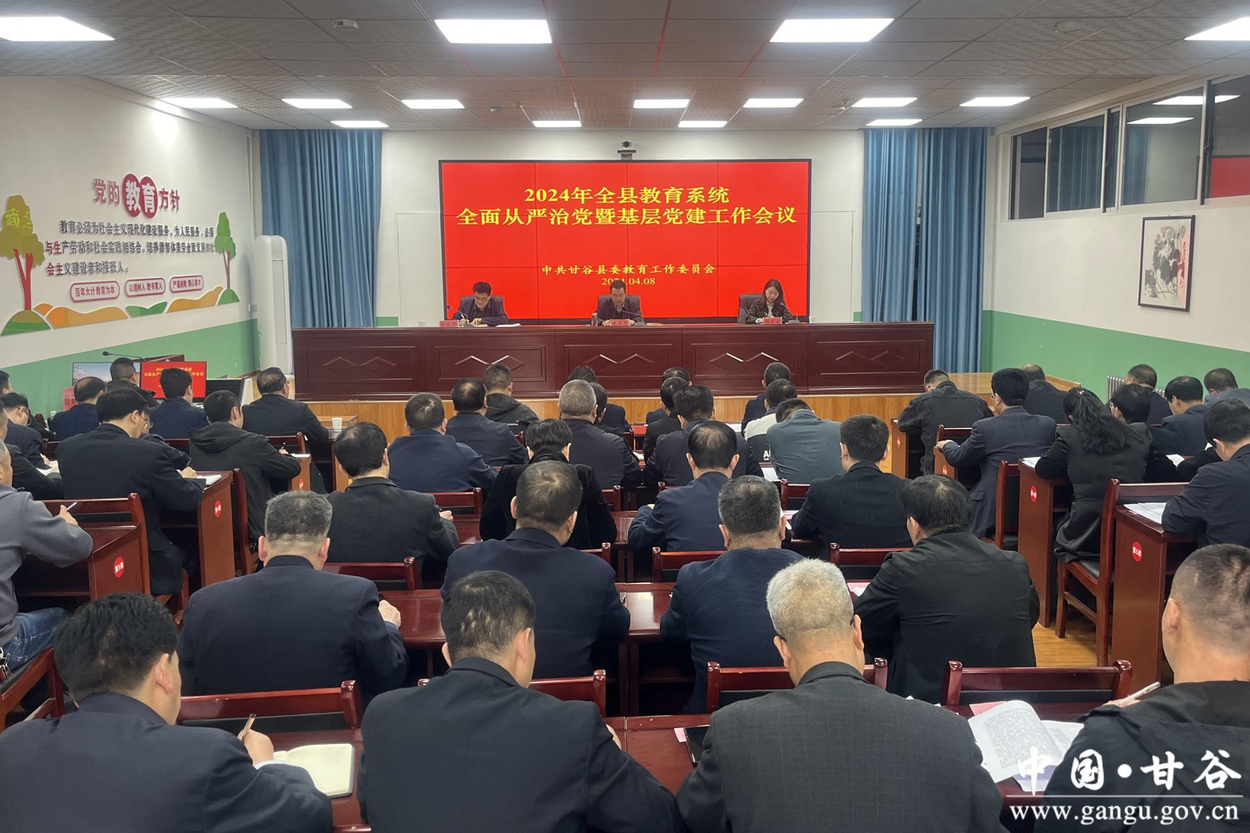 新甘谷讯【记者 王胜宇】4月8日,甘谷县委教育工委召开2024年全县教育系统全面从严治党暨基层党建工作会议,传达二十届中央纪委三次全会精神、全国组织部长会议精神、甘肃省党的建设工作领导小组会议精神、省纪委十四届三次全会精神、市纪委八届四次全会精神、全市基层党建工作重点任务调度推进会议精神、全市教育系统2024年全面从严治党暨基层党建工作会议精神。县委教育工委书记,县教育局党组书记、局长李果香出席会议并讲话。各学区、县直学校(幼儿园)党组织书记,党务专干;局办公室、党建办、驻县教育局纪检监察组全体干部共80余人参加会议。
