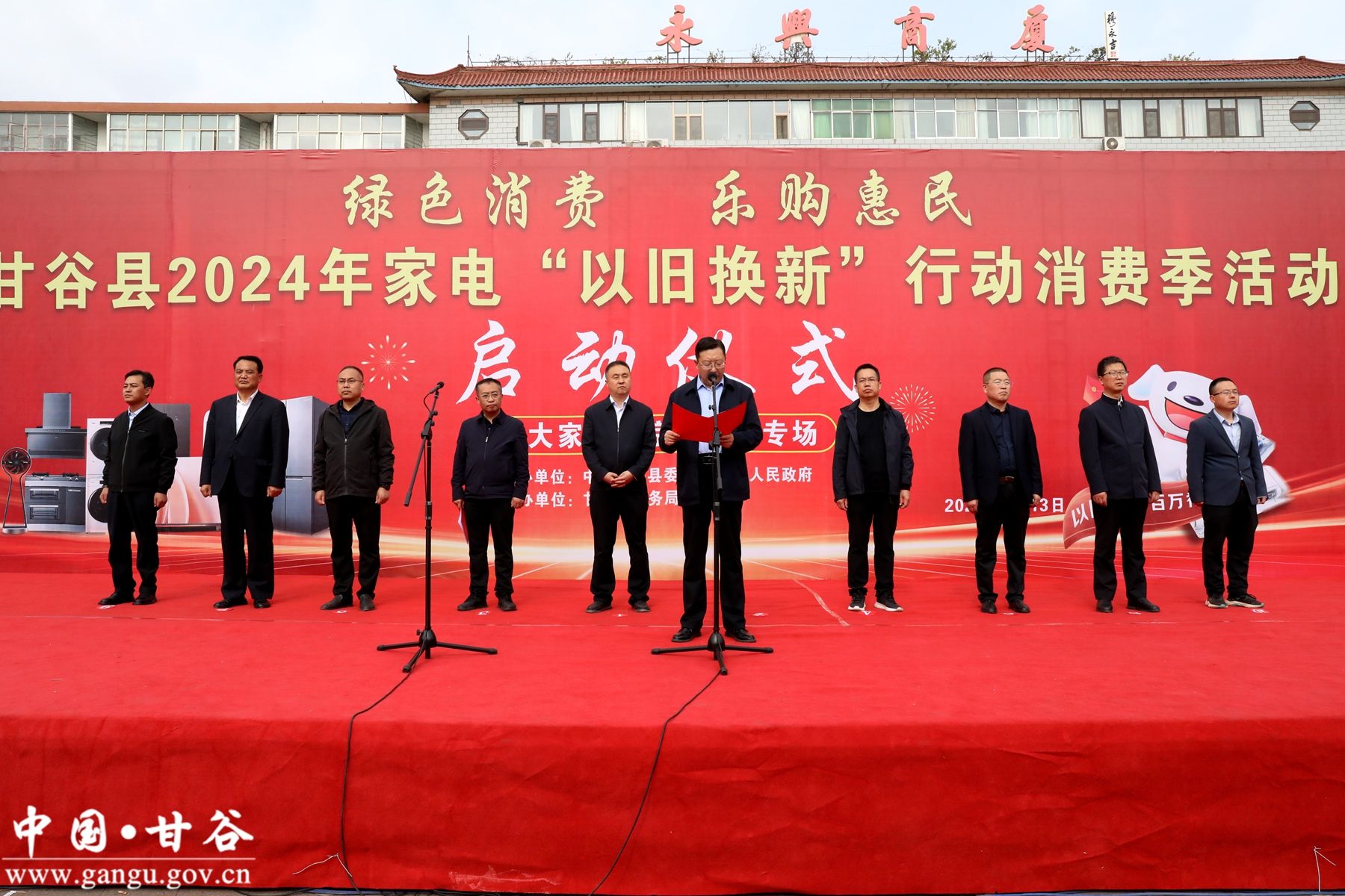 新甘谷讯【记者 黄 鑫】4月13日,甘谷县举行2024年家电“以旧换新·优惠补贴”促消费活动启动仪式。县委常委、统战部部长王见学,县人大常委会副主任陈旭,副县长马顺民,县政协副主席魏杰出席启动仪式。
