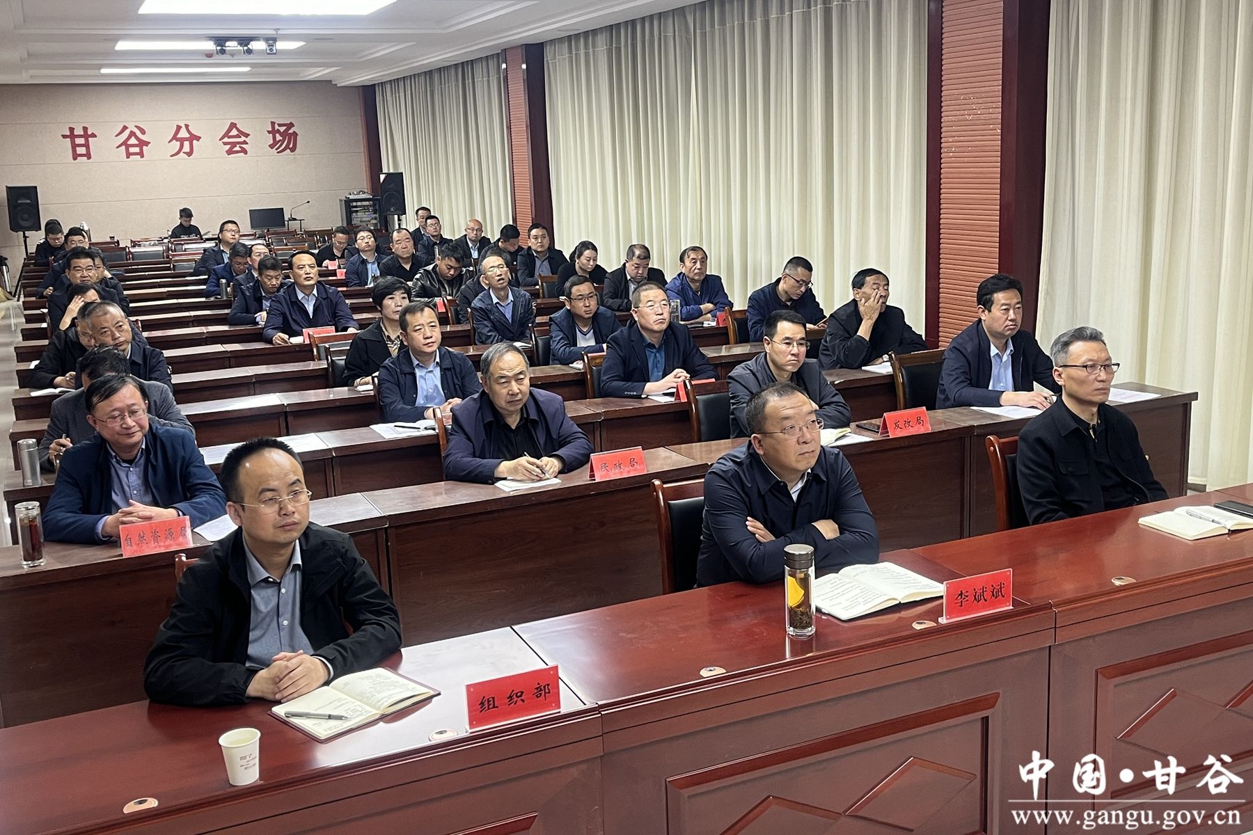 县委常委、副县长李斌斌及各乡镇、相关部门负责人在甘谷分会场参加会议。
