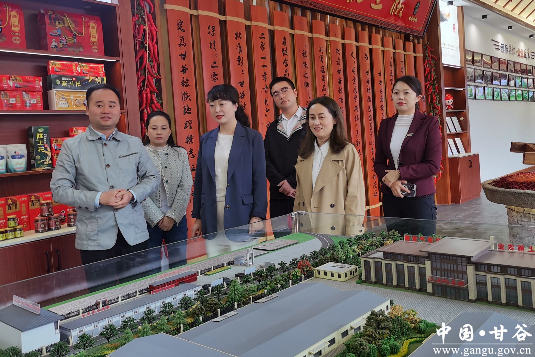 王红霞一行先后深入到润谷新媒文化传播有限公司、六峰镇新庄村、甘肃陇上椒农业科技集团有限公司、天水步隆毛织服饰有限公司、爱丽尔服装有限公司和鸿合顺服饰有限公司等。通过听取汇报、实地查看、调阅资料等方式,对甘谷县妇联改革、执委干部队伍履职、基层妇联组织建设、“三新”领域妇联组织建设、巾帼志愿者发挥、巾帼大宣讲、乡村就业工厂、巾帼家美积分超市、“爱心妈妈”结对帮扶等工作进行了调研。