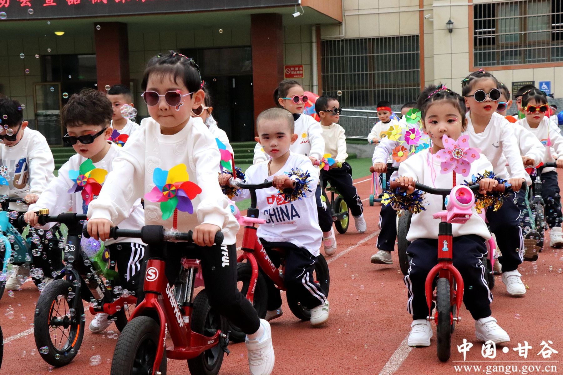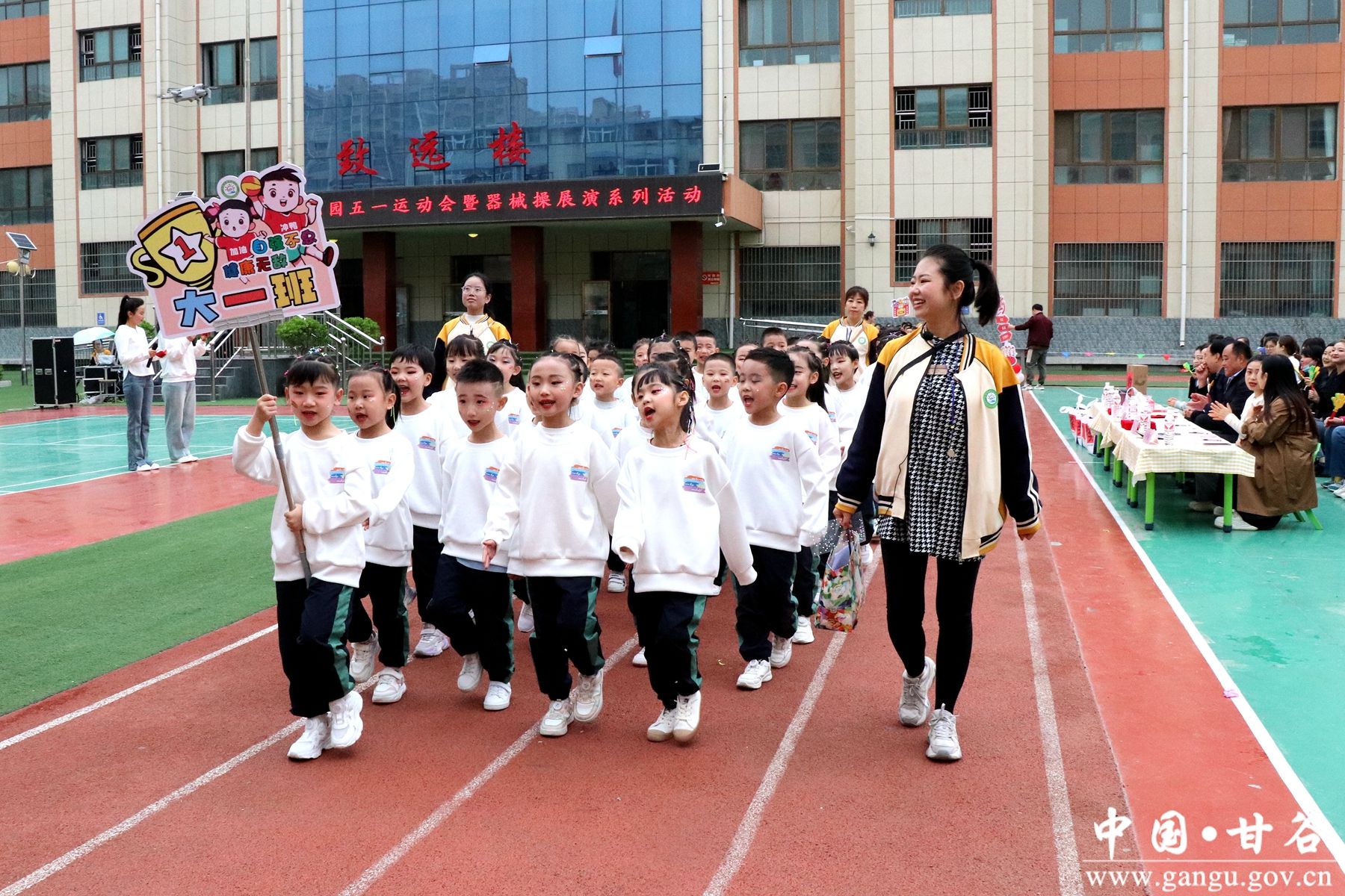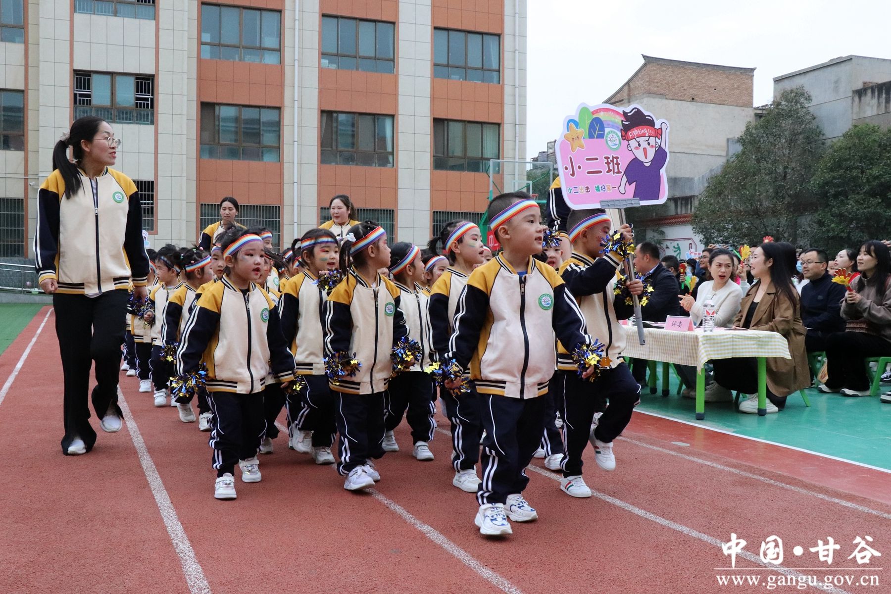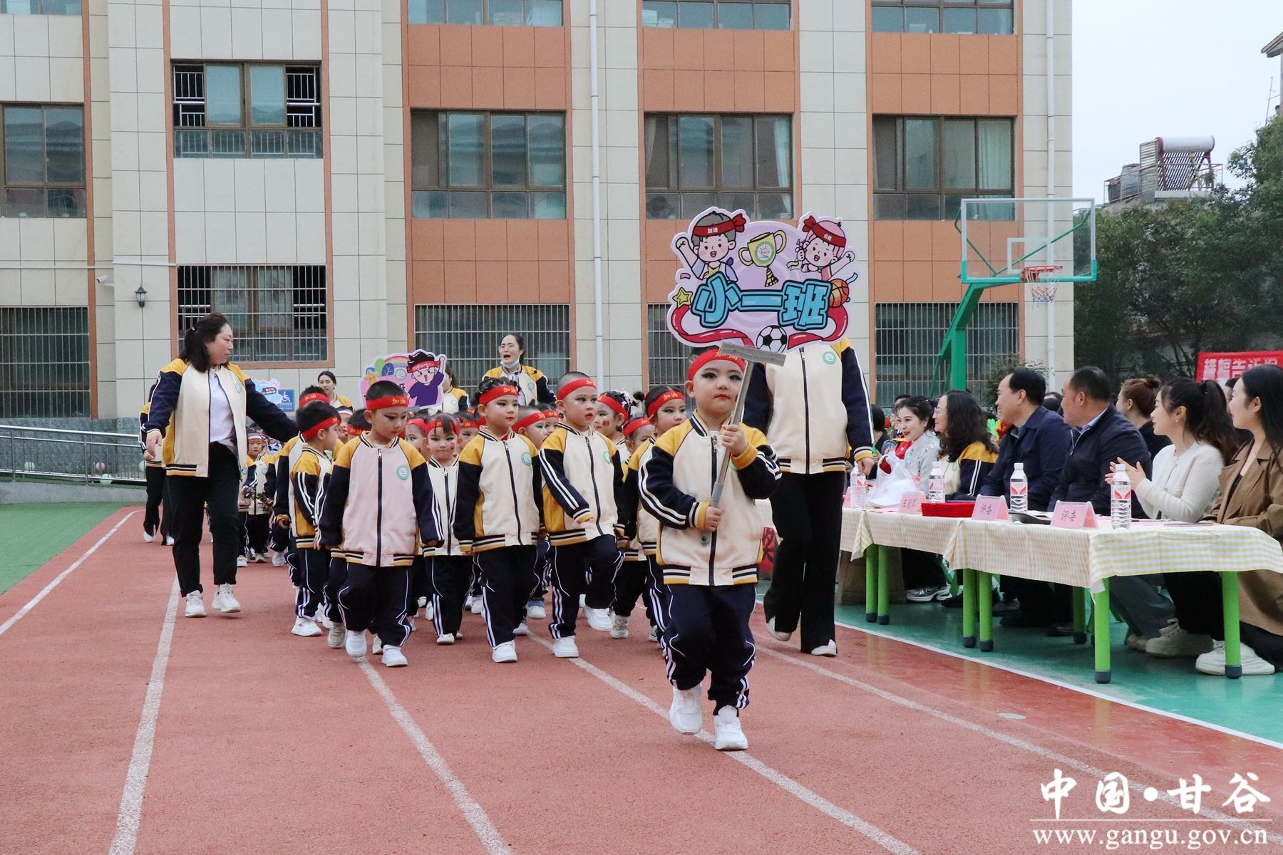 伴随着铿锵有力的《运动员进行曲》,由幼儿园小朋友们组成的国旗、小汽车、平衡车、滑板车、自行车及各班级队列方阵依次入场,小朋友们穿着统一的服装,喊着铿锵有力的口号,踏着整齐的步伐走向我们。