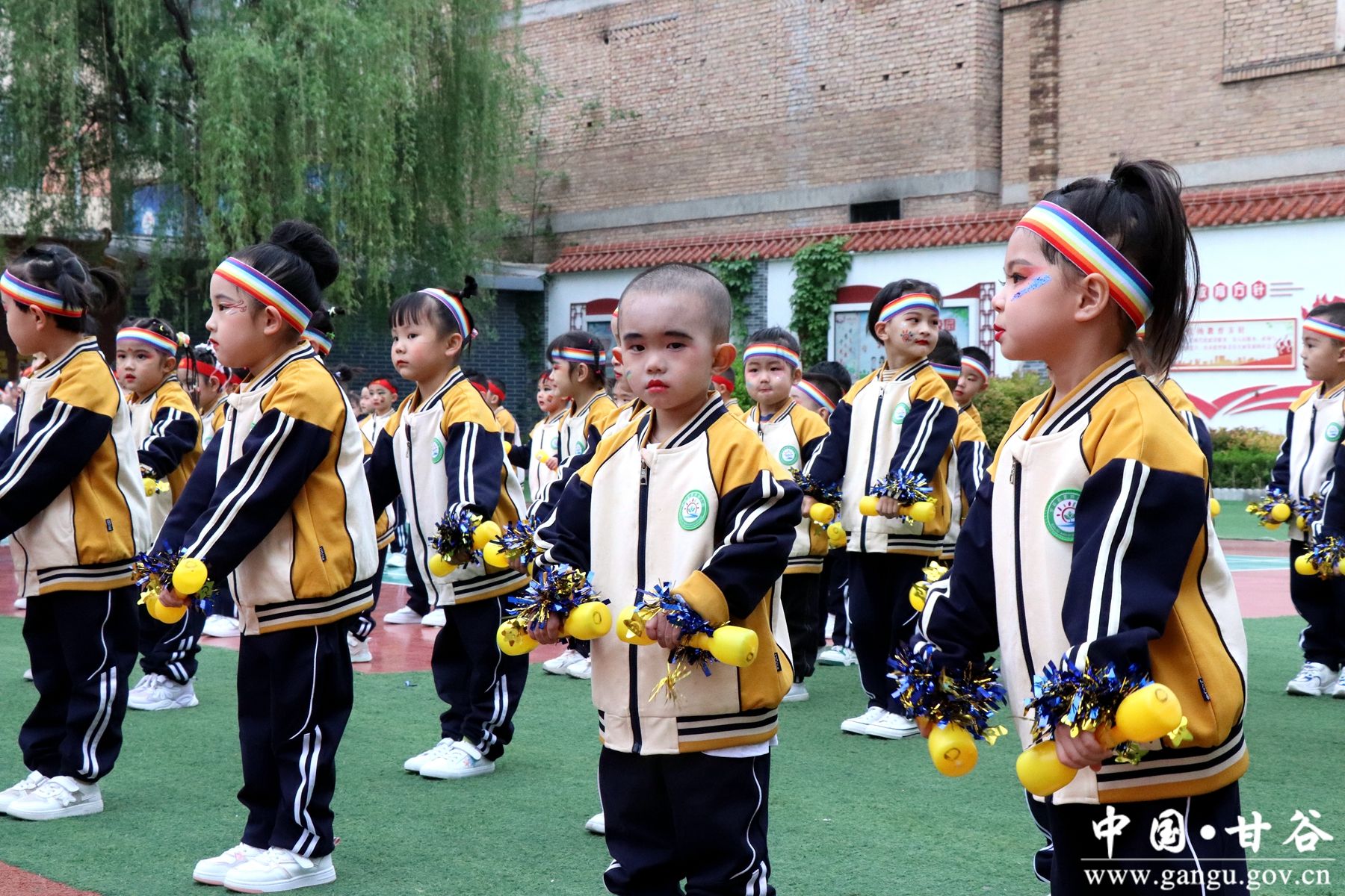 瞧,小班的小萌娃上场了!他们迈着自信的步伐,灵活地舞动手中的器械,认真锻炼、灵气满分。为你们点赞,你们是最棒的!