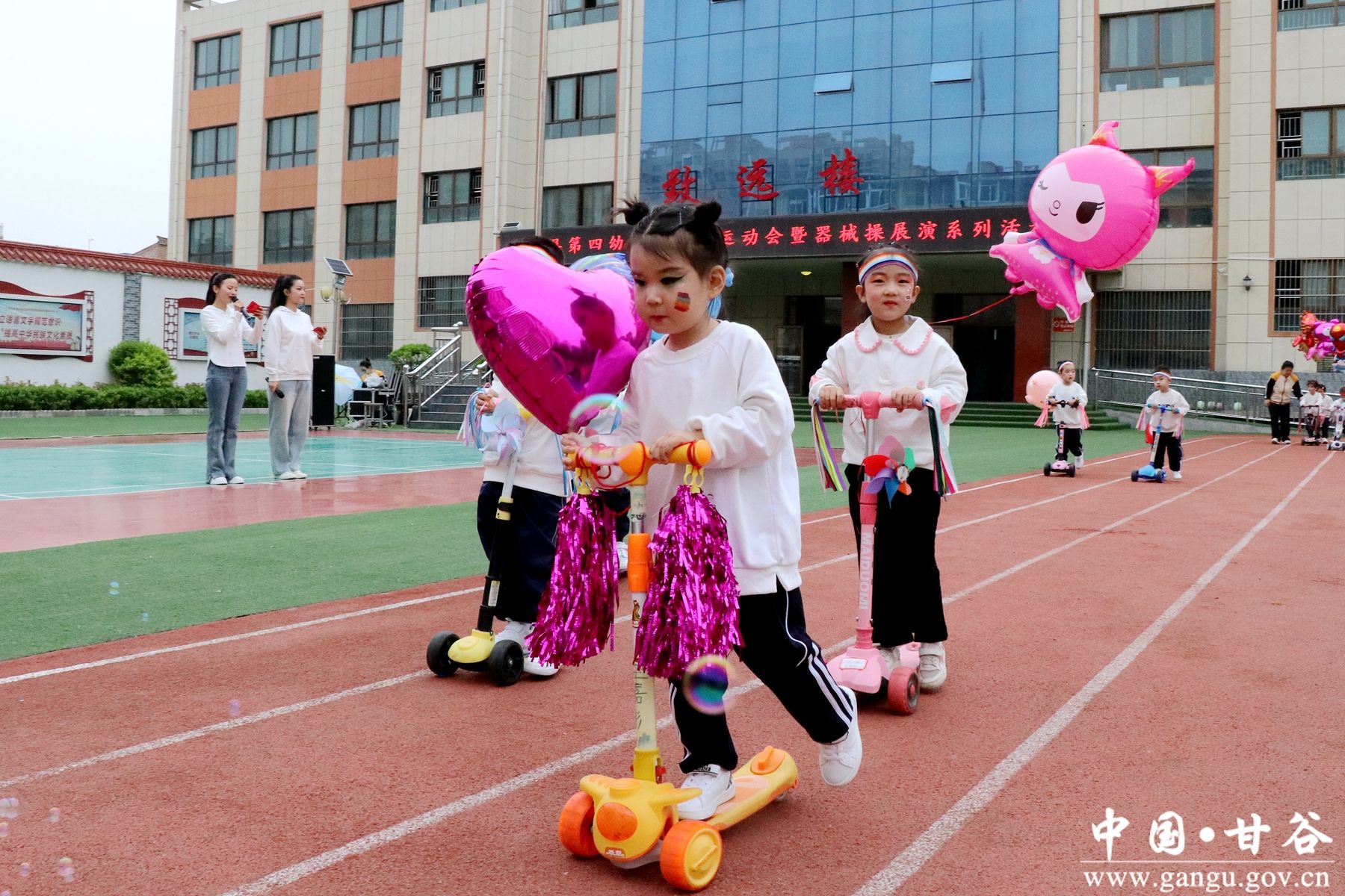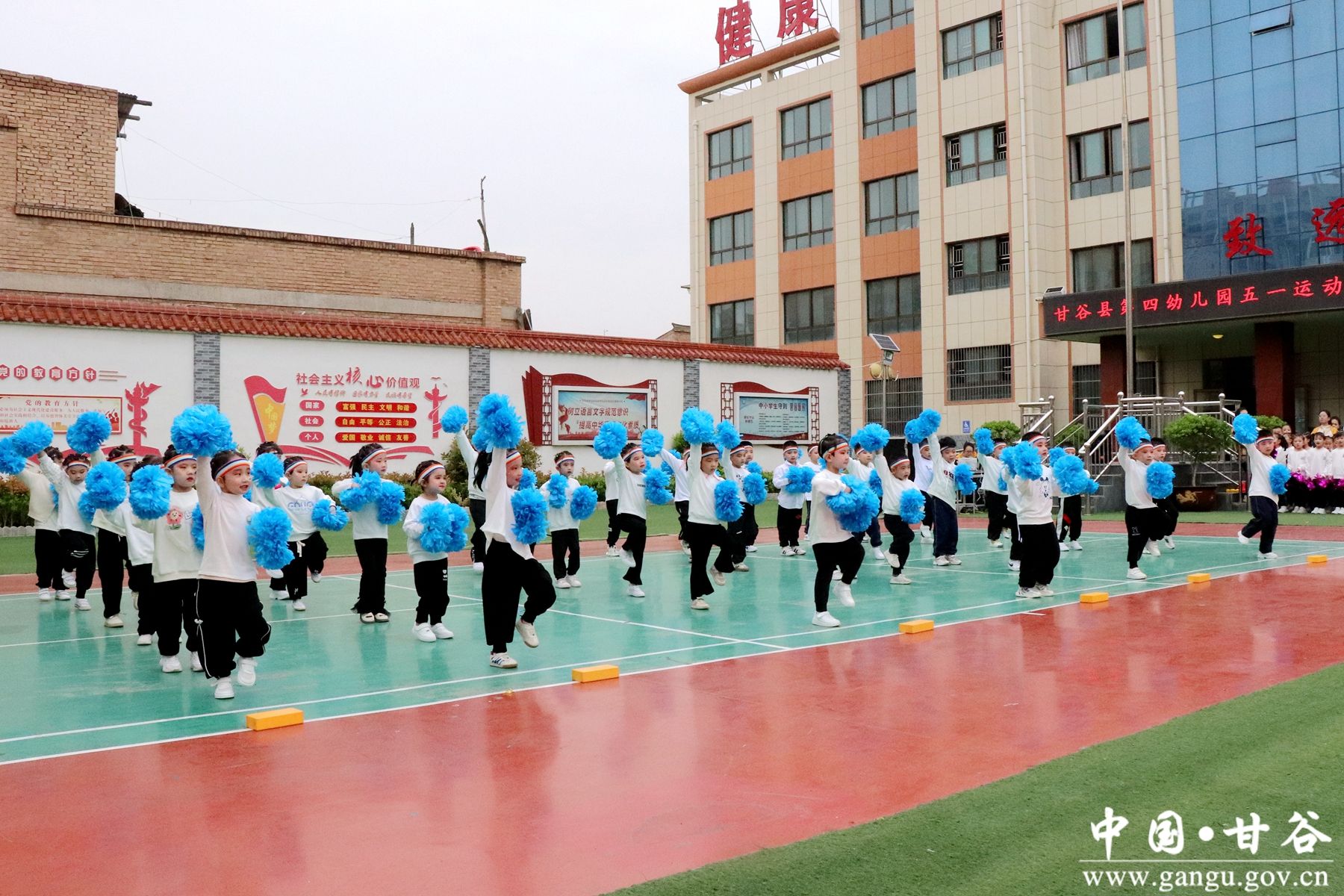 新甘谷讯【记者 颉凤 刘亮】为培养孩子积极进取、勇敢坚强的优良品质,发展小朋友运作的协调性和灵活性,激发孩子参加体育活动的兴趣,4月20日,甘谷县第四幼儿园举行器械操展演系列活动。