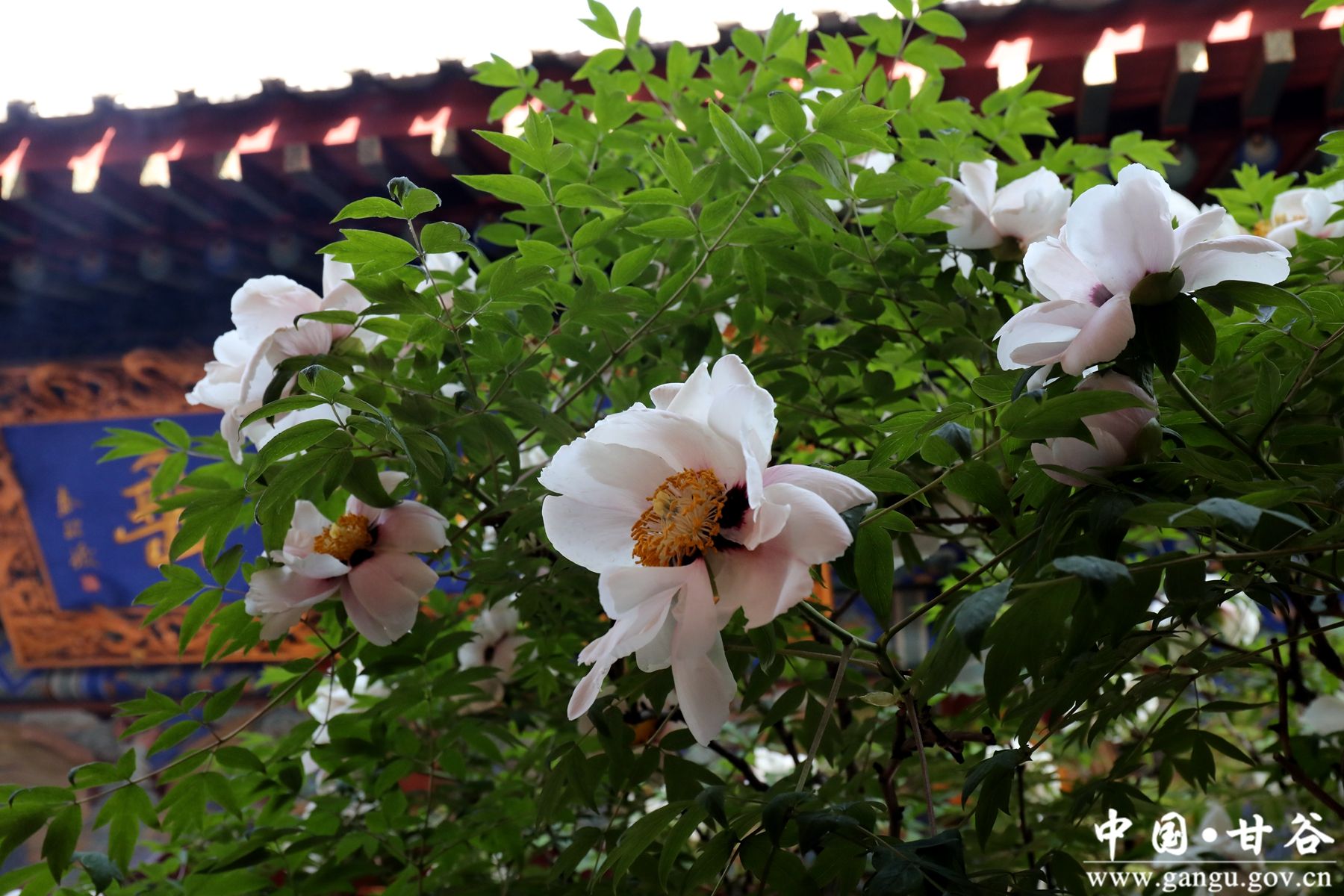 据历史资料介绍,甘谷天门山巅的东岳庙,始山上建于秦汉,重建于宋仁宗天圣年间(公元1023—公元1031年),庙院内的两株牡丹,植于北宋仁宗年间,距今约1000年,是珍贵文物树木。历代诗人吟咏者众多,留下了不少千古绝唱和脍炙人口的名篇佳句。清乾隆《伏羌县志》艺文卷中有淮海续缙《伏羌杂记》诗中以“色欲天仙艳,红归芍药妆”咏唱当时盛开的牡丹。