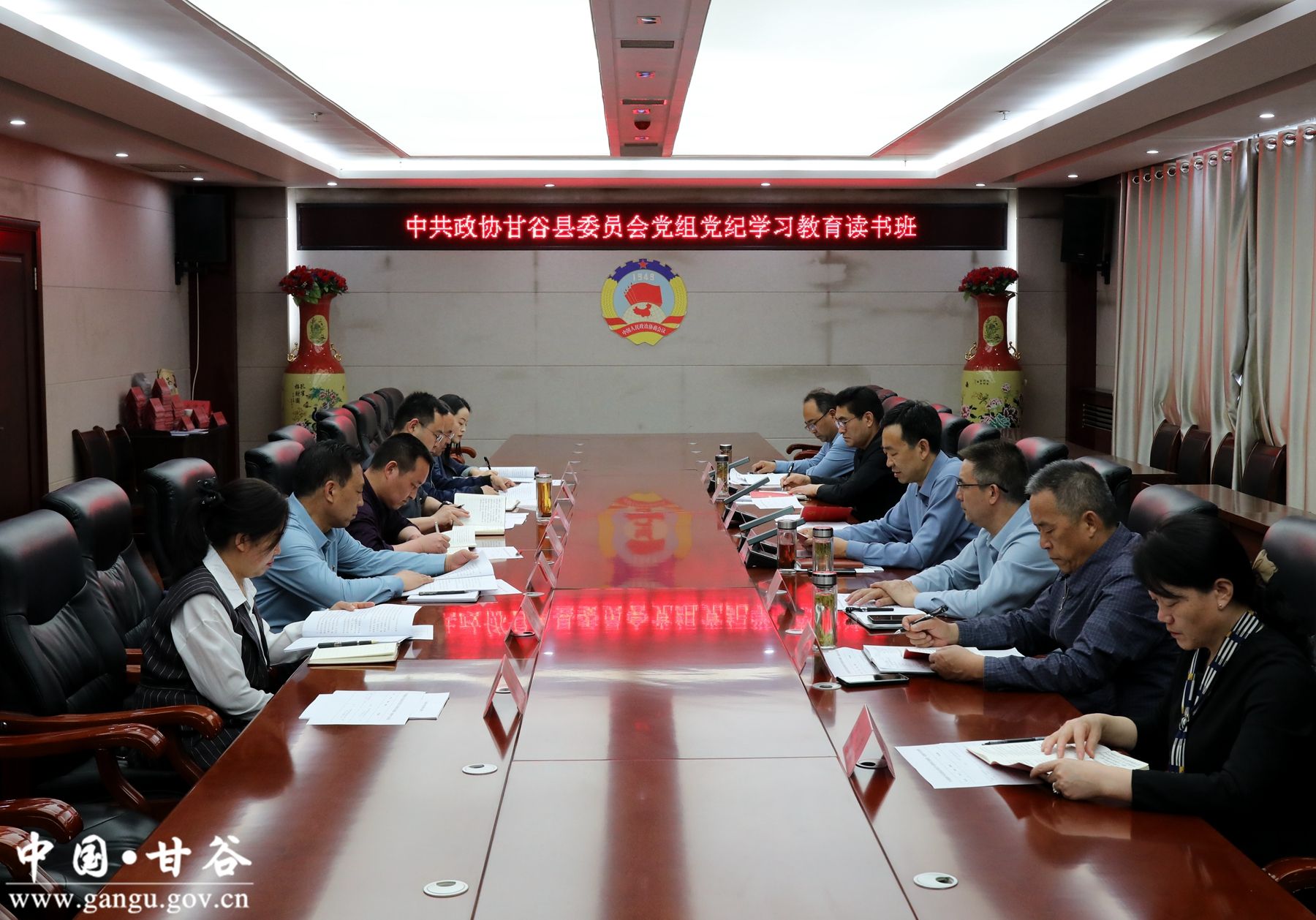 新甘谷讯【记者 黄鑫】4月25日,甘谷县政协党组举行党纪学习教育读书班开班式暨第一次集中学习。县政协党组书记、主席令军强主持会议并讲话,县政协副主席马清平、魏杰、郭有生、李文定、张菊莲出席会议。会议学习了《中国共产党纪律处分条例》有关内容。