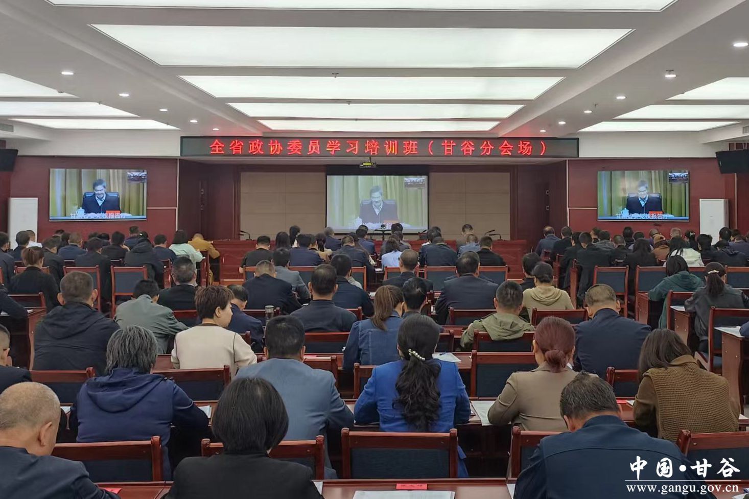 学习培训班在各市州、县区设分会场。县政协党组书记、主席令军强,县政协副主席马清平、魏杰、郭有生、李文定、张菊莲及全体政协委员、政协机关干部在甘谷分会场参加培训。