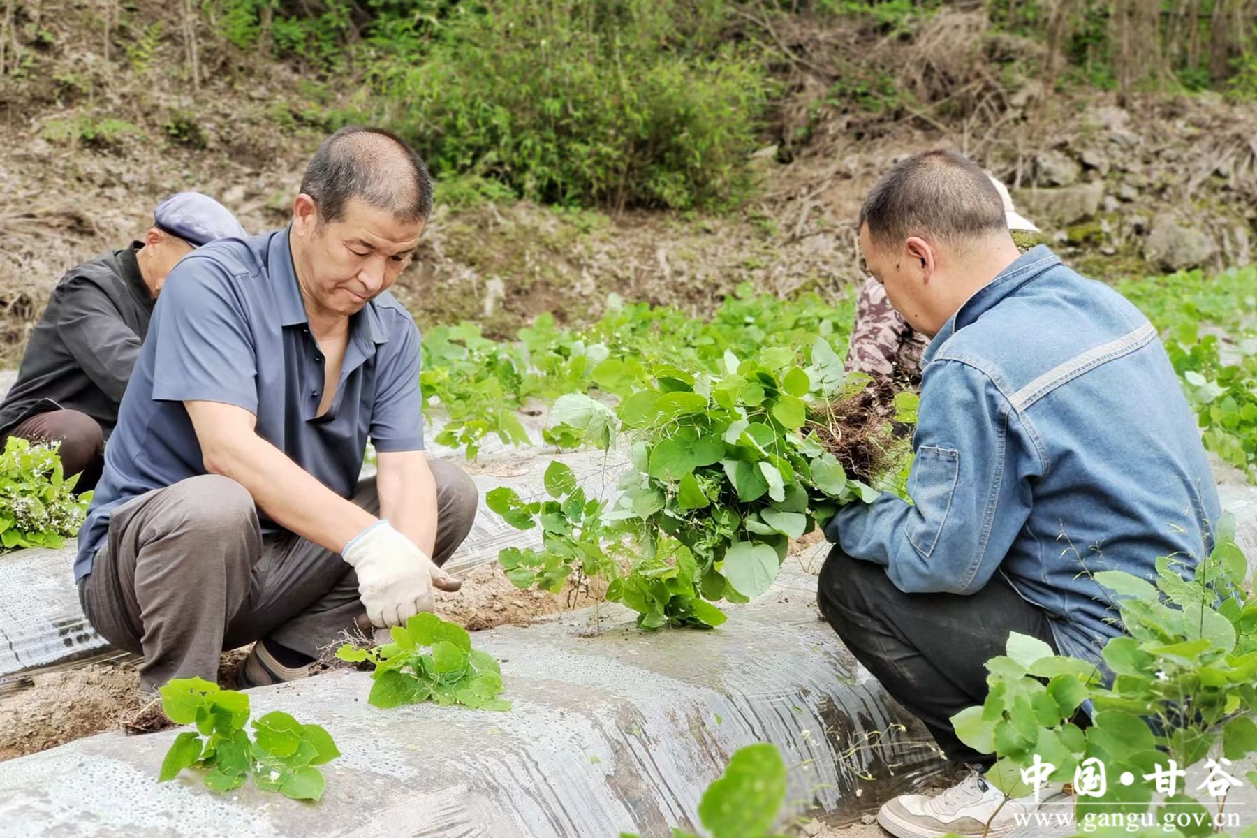 新甘谷讯【通讯员 杨银强】当下正是中药材生长的“黄金”时期。近日,在武家河镇格板峪村,镇村干部这几天一直忙着组织群众进行淫羊藿、毛慈菇等中药材试种工作。目前为止,整个移栽过程都很顺利,2000株淫羊藿苗、900株毛慈菇苗全部完成栽种,剩下的就是精心管护和等待收获。新的希望与生机在山林中萌发滋长。