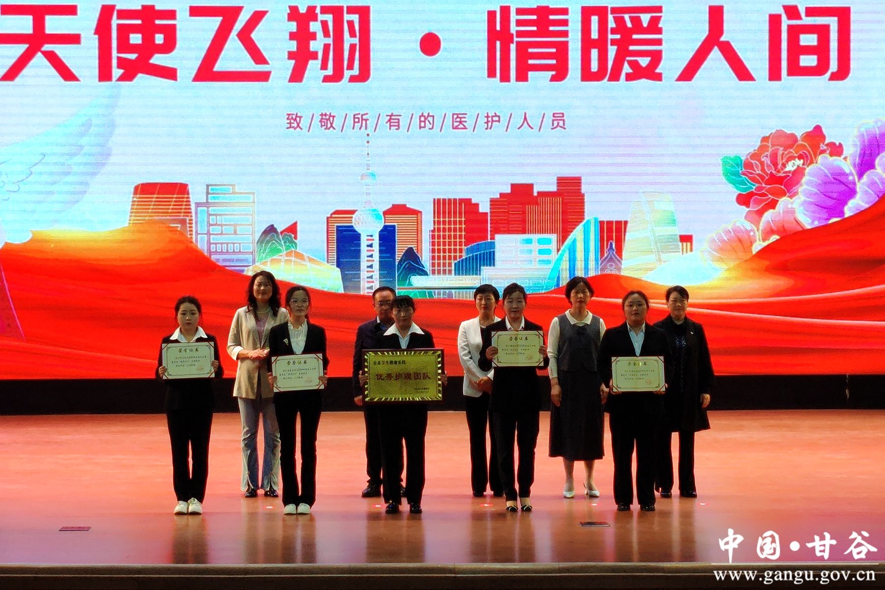 新甘谷讯【记者 谢映波 何乐】为弘扬南丁格尔精神,表彰先进,全面推进医院护理工作高质量发展。5月10日,甘谷县卫健系统举行主题为“天使飞翔·情暖人间”“5.12”国际护士节表彰暨文艺汇演活动。县委常委、宣传部部长范慧,县人大常委会副主任杨晓涛,副县长马顺民,县政协副主席张菊莲出席活动并为全县优秀护士、优秀护理团队颁奖。