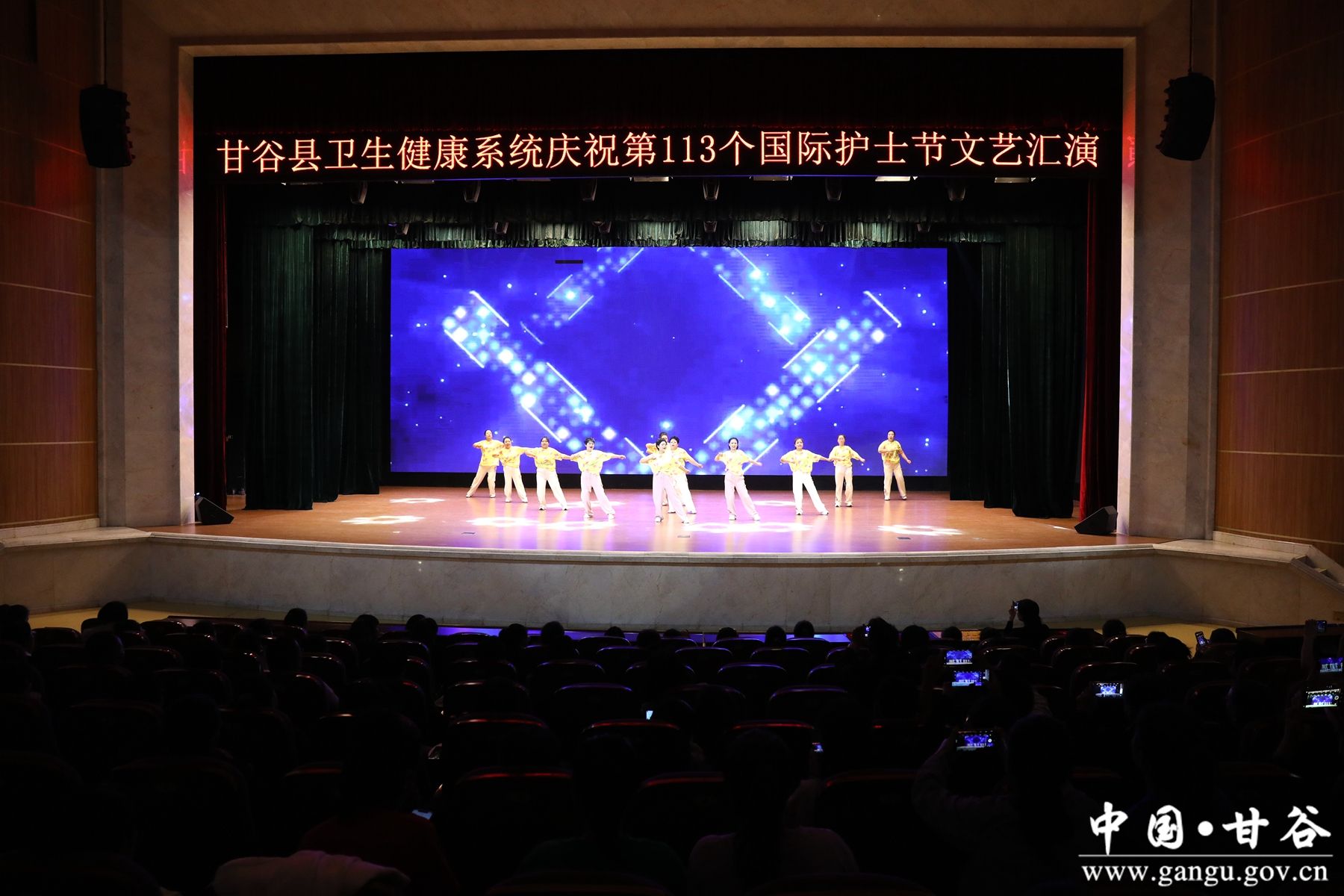 庆祝活动在歌伴舞《咱老百姓》中拉开序幕,歌曲表演《复兴的力量》《万泉河水清又清》《欢天喜地》激情高昂,诗歌朗诵节目《我爱上班》《甘谷礼赞》写出了表演者对工作、对甘谷的热爱。民族、现代等舞蹈《相亲相爱一家人》《我和我的祖国》《Good Time》节奏欢快,引得全场掌声不断。整场晚会内容丰富、形式多样,各卫生院的护士们自编、自导、自演的演出展现了新时代白衣天使们朝气蓬勃、积极向上的新风采,更抒发了对护理事业的热爱之情。