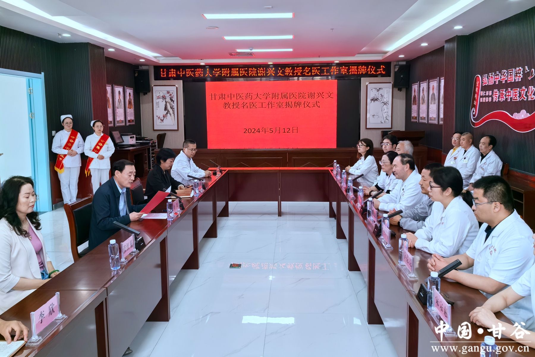 新甘谷讯【记者 王瑷萍】5月12日,甘肃中医药大学附属医院谢兴文教授名医工作室在县中医院揭牌成立。县委常委、组织部部长杜兴,县委常委、宣传部部长范慧出席。