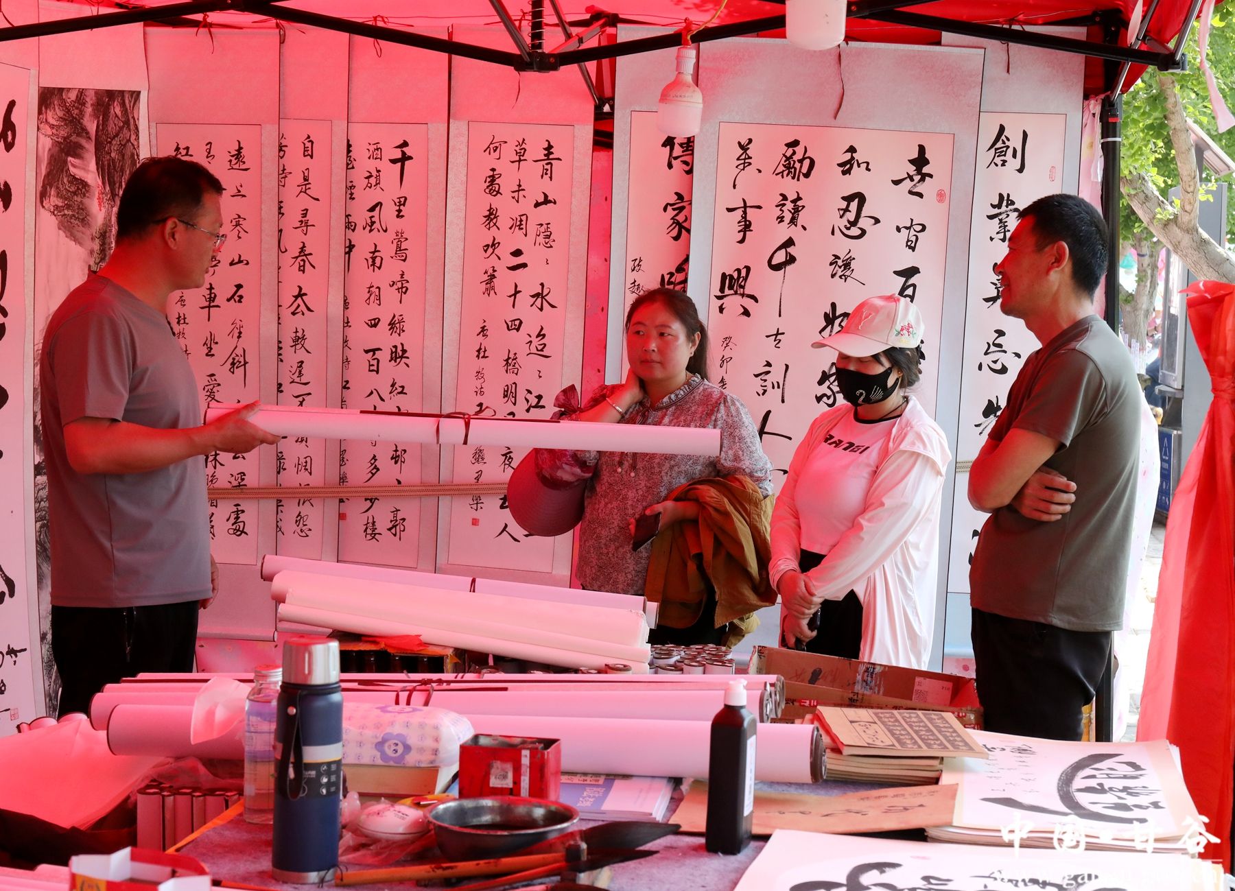 “最近来画廊交流的同行比较多,看字画的人也非常多,我的字画作品能给大家带来精神享受,我感到非常高兴 。”画廊里的李先生一边展示自己的书法作品一边自豪地说道。