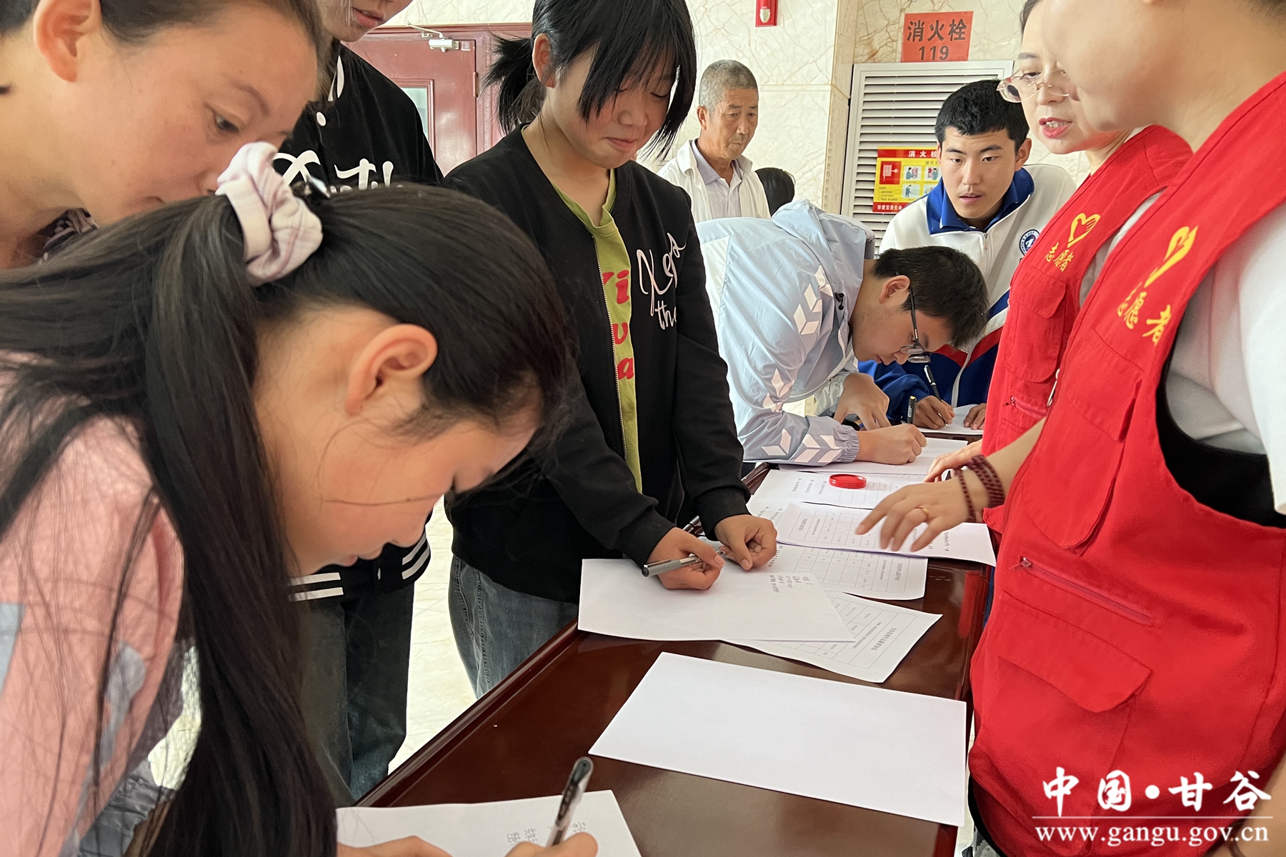 在发放仪式结束后,高三年级及个别因身体行动不便的受助学子,无法前往活动现场,甘谷县青年志愿者一行人,利用中午学生休息时间,前往金坪,西坪,城区等将韩国忠先生的爱意送到受助学子的手中,让感受到来自社会的关爱,长大成才后回报社会。