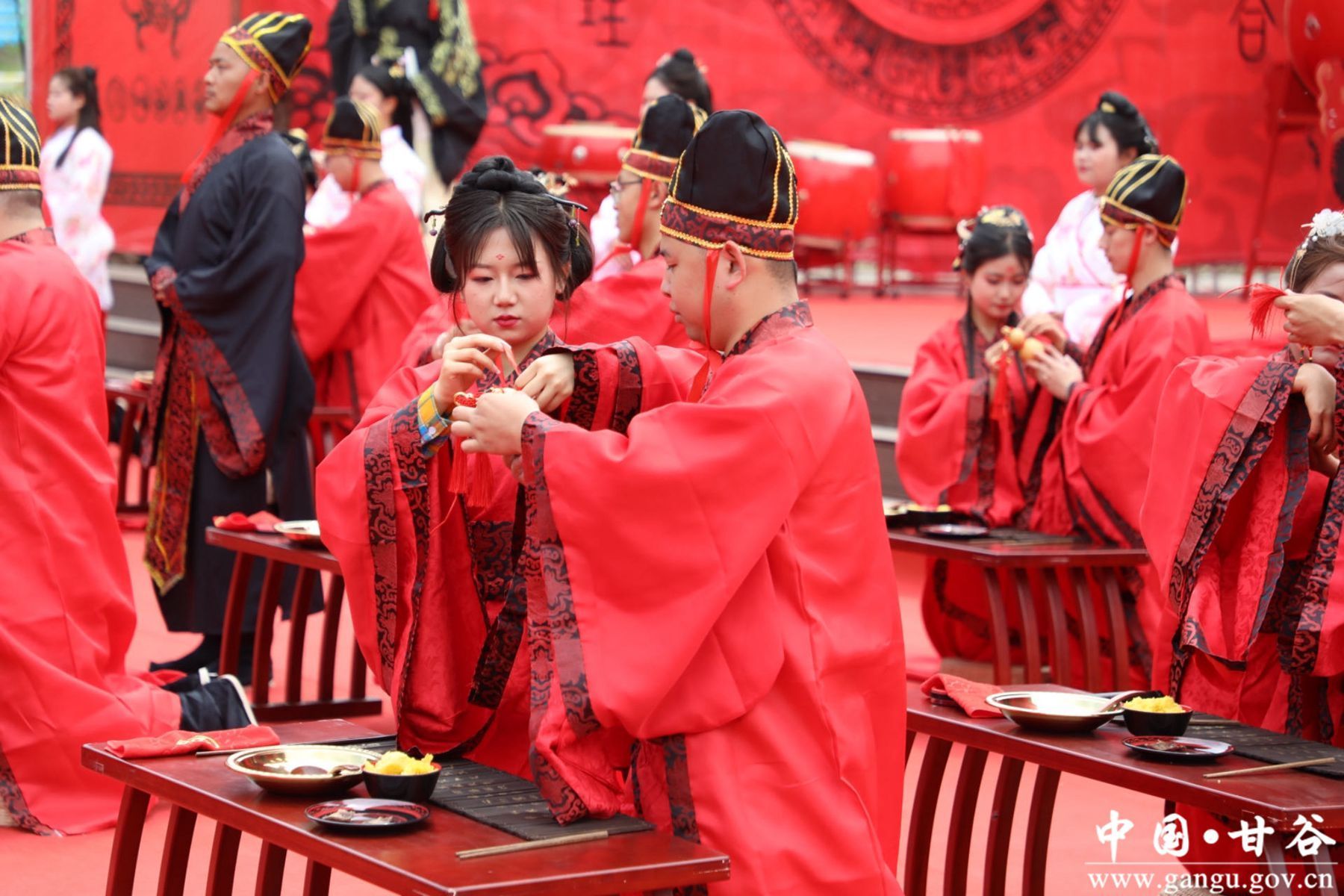 婚礼以周礼为蓝本,典雅、尊贵、庄敬。新人们手牵红绸,步步生莲,仿佛从千年前的画卷中走出。他们的脸上洋溢着幸福的笑容,眼中闪烁着对未来的憧憬。这一刻,他们不仅是彼此的伴侣,更是历史的传承者和文化的守护者。