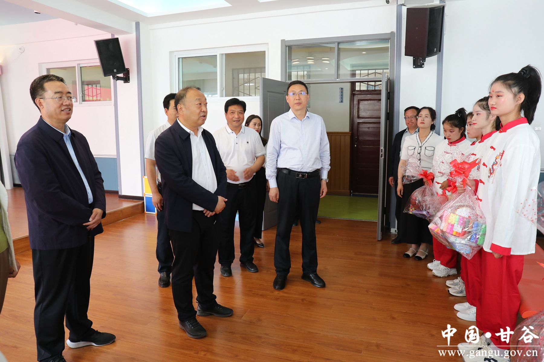 新甘谷讯【记者 谢映波 黄鑫 颉凤 李宛郁】5月31日,在第74个“六一”国际儿童节到来之际,县委书记吴健,县委副书记、县长孙忠平,县人大常委会主任杨帆,县政协主席令军强一行来到慈光九年制学校、特殊教育学校、磐安小学、苍耳王小学、金山小学等学校开展“六一”国际儿童节慰问活动。向同学们致以节日的祝贺,向辛勤耕耘在教育一线、付出艰辛努力的广大教育工作者表示亲切的慰问,向长期以来关心支持少年儿童事业发展的社会各界人士表示衷心的感谢。