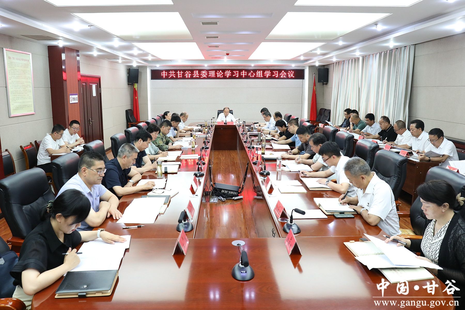 新甘谷讯【记者 谢映波】6月26日,县委书记吴健主持召开中共甘谷县委理论学习中心组学习会议,深入学习习近平总书记在中共中央政治局第十四次集体学习时的重要讲话精神和对进一步做好“四好农村路”建设作出的重要指示精神,认真学习《习近平关于全面加强党的纪律建设论述摘编》部分内容,开展交流研讨。县委副书记、县长孙忠平,县人大常委会主任杨帆及县委理论学习中心组成员单位负责人参加会议。