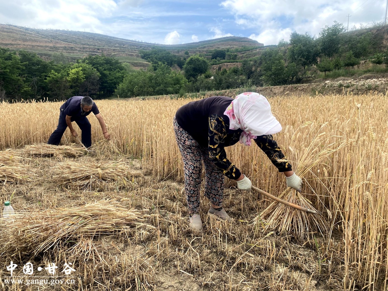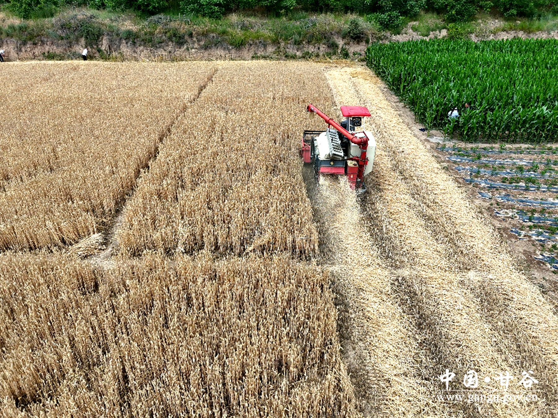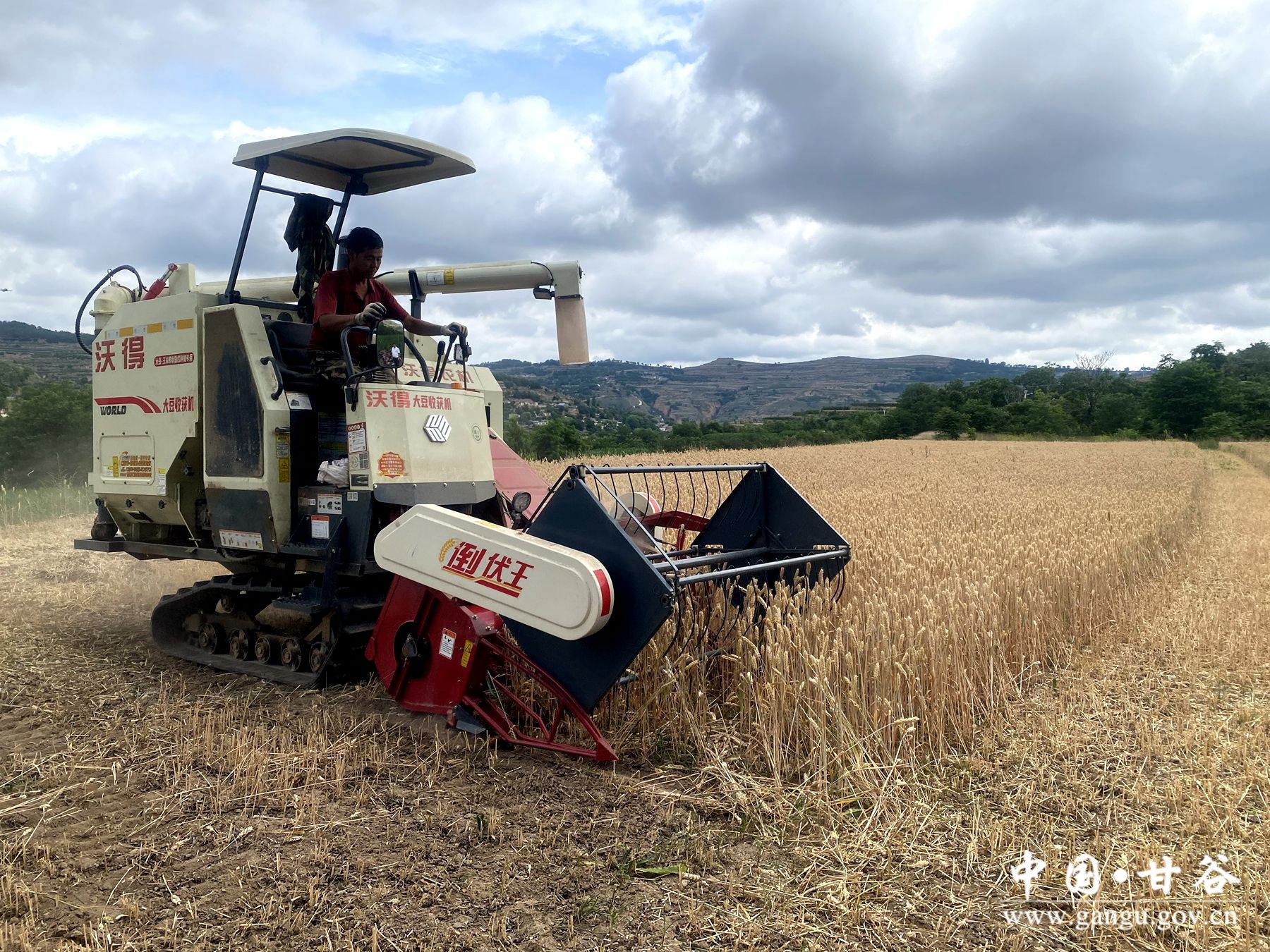 近年来,甘谷县把稳定粮食生产、保障粮食安全作为底线任务,纵深推进“藏粮于地、藏粮于技”战略,紧盯“农业增产、农户增收、产业培育、综合开发”,推广应用旱作农业技术。今年,甘谷县冬小麦种植面积达33.36万亩,主要分布在东北部八里湾、金山、西坪等乡镇浅山区,目前已全面进入收获期。