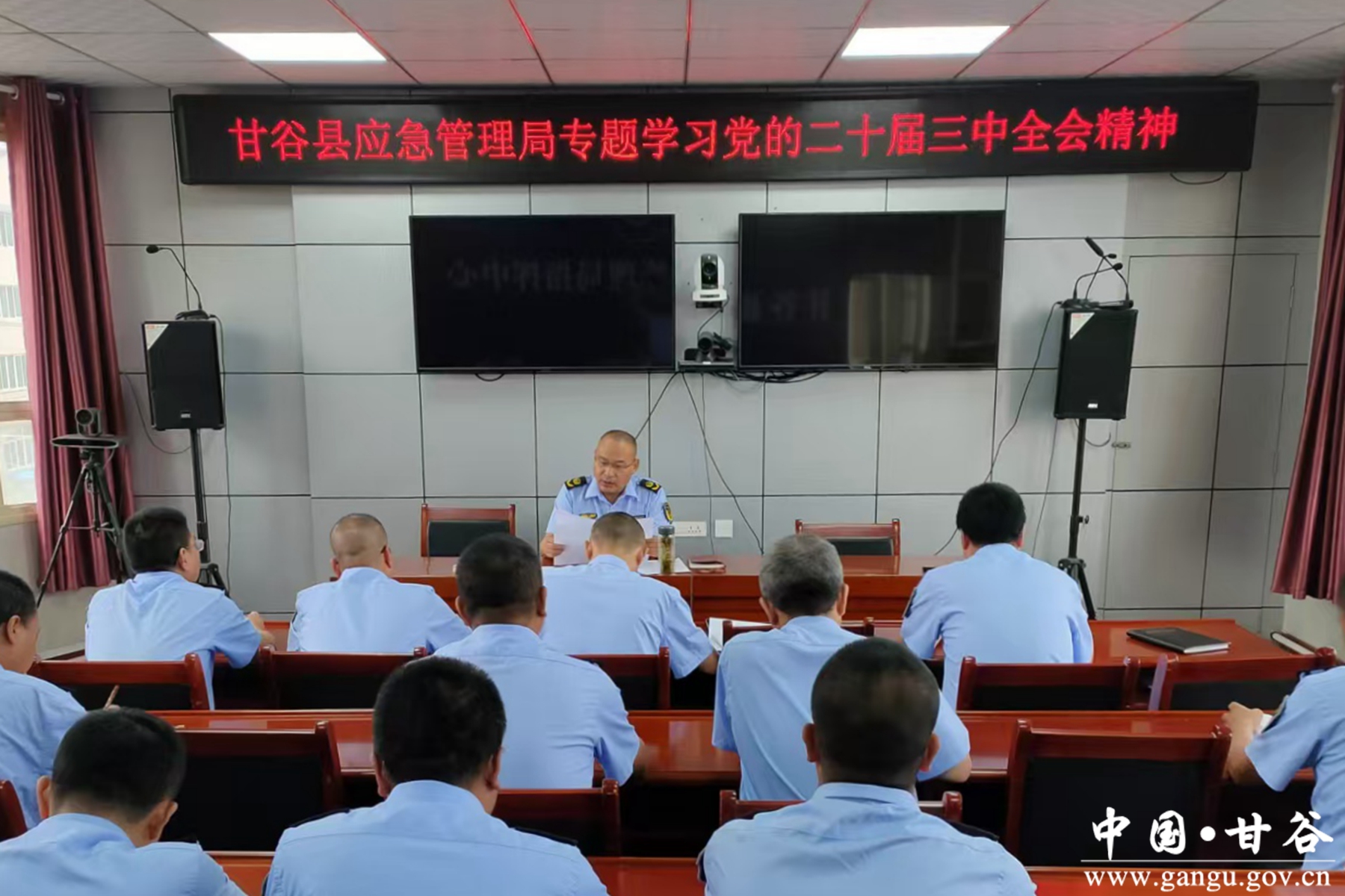 甘谷县应急管理局党委书记、局长张克义说,党的二十届三中全会是在以中国式现代化全面推进强国建设、民族复兴伟业的关键时期召开的一次十分重要的会议。我们要深刻把握全会提出的重要思想、重大观点、重大举措,准确理解全会对国家治理体系和治理能力现代化建设提出的明确要求。按照党中央和省市县委部署要求,迅速行动,对标对表、细化措施、狠抓落实,把贯彻落实全会精神的实际成效转化为加快推动甘谷应急管理事业高质量发展的具体实践。