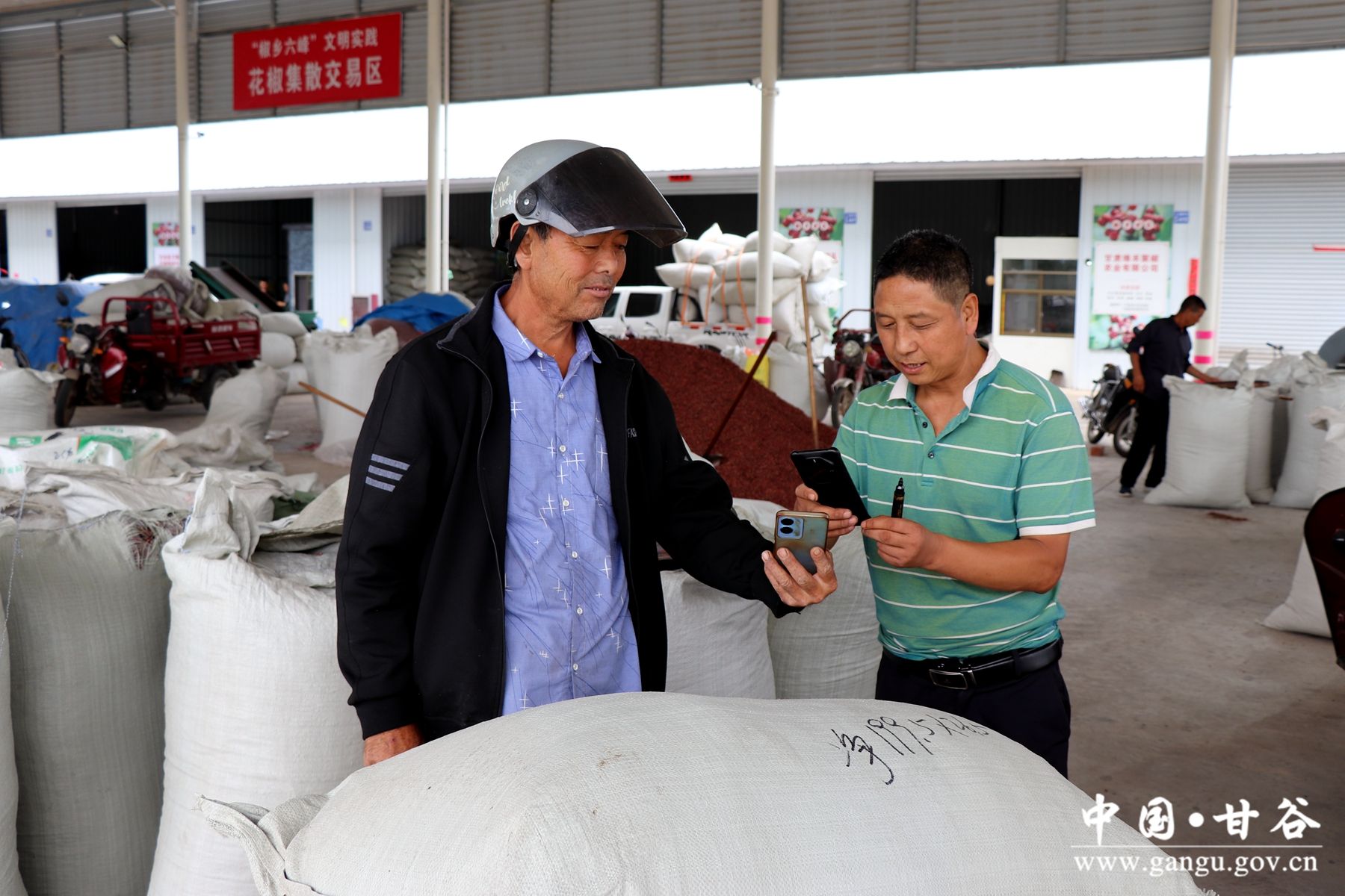 2023年8月,甘谷县六峰镇集花椒交易、仓储物流、加工销售为一体的花椒集散交易中心正式投入使用,吸引了31家花椒经理人入驻,将交易中心建在了群众“家门口”。黄五一是甘谷县六峰镇六峰村村民,花椒是他家里的主要收入来源,今年家里的花椒产量增加,交易中心也建在了家门口,他直呼太方便了。