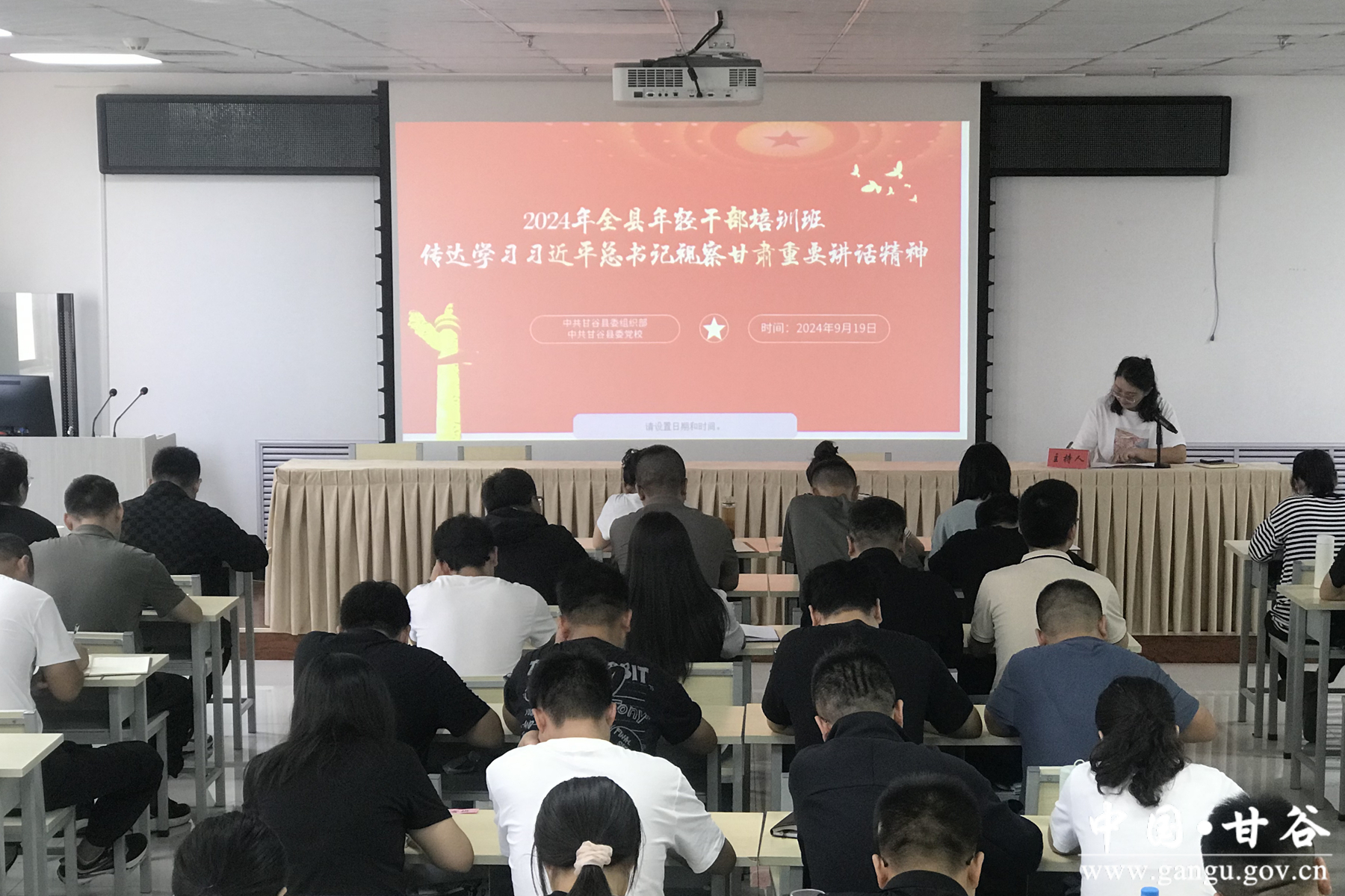 新甘谷讯【记者 王圆红】9月19日,2024年甘谷县年轻干部培训班传达学习习近平总书记视察甘肃重要讲话重要指示精神、习近平总书记在全面推动黄河流域生态保护和高质量发展座谈会上的重要讲话精神,以及省委、市委、县委常委会(扩大)会议精神,研究部署贯彻落实工作。