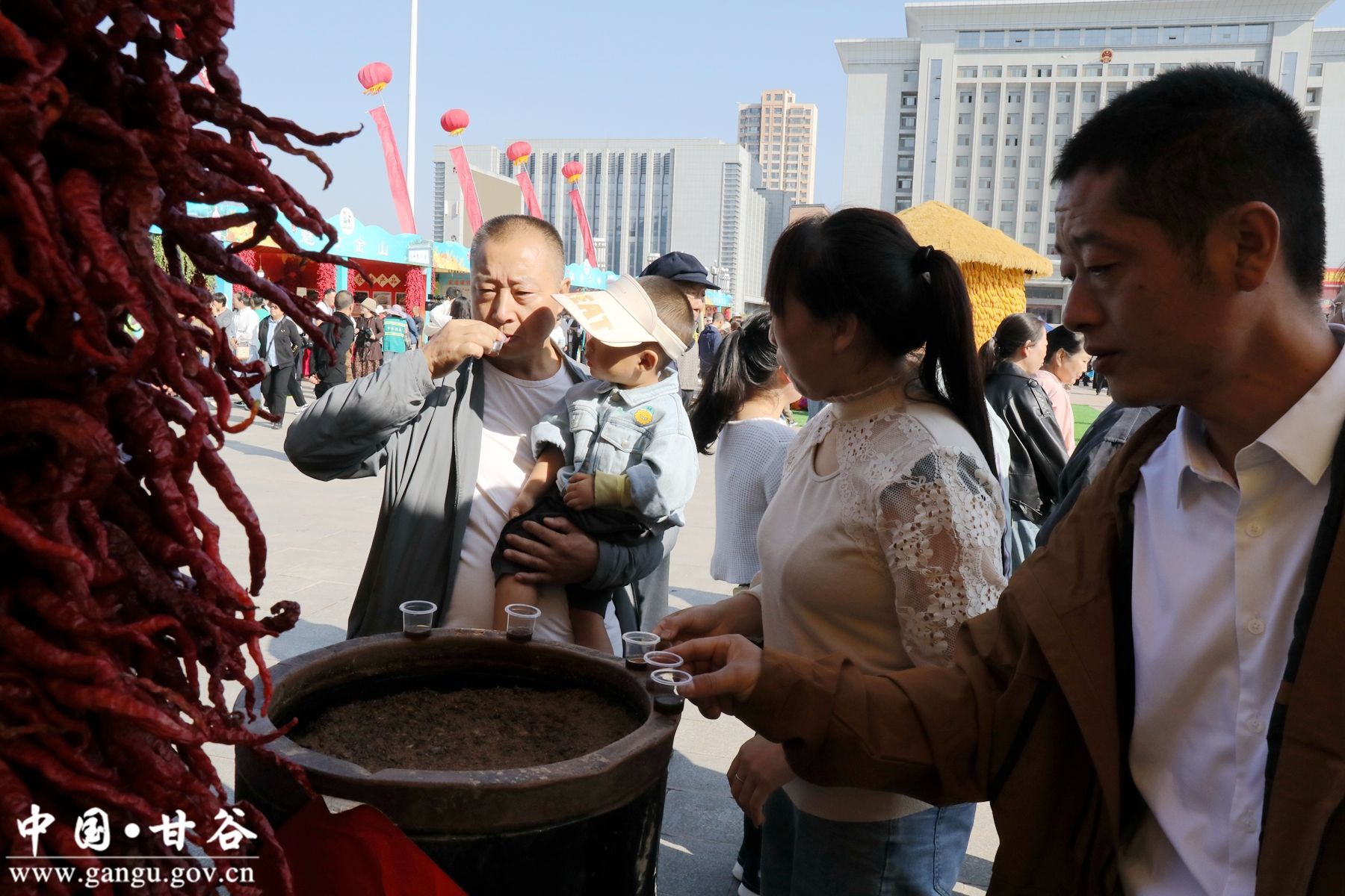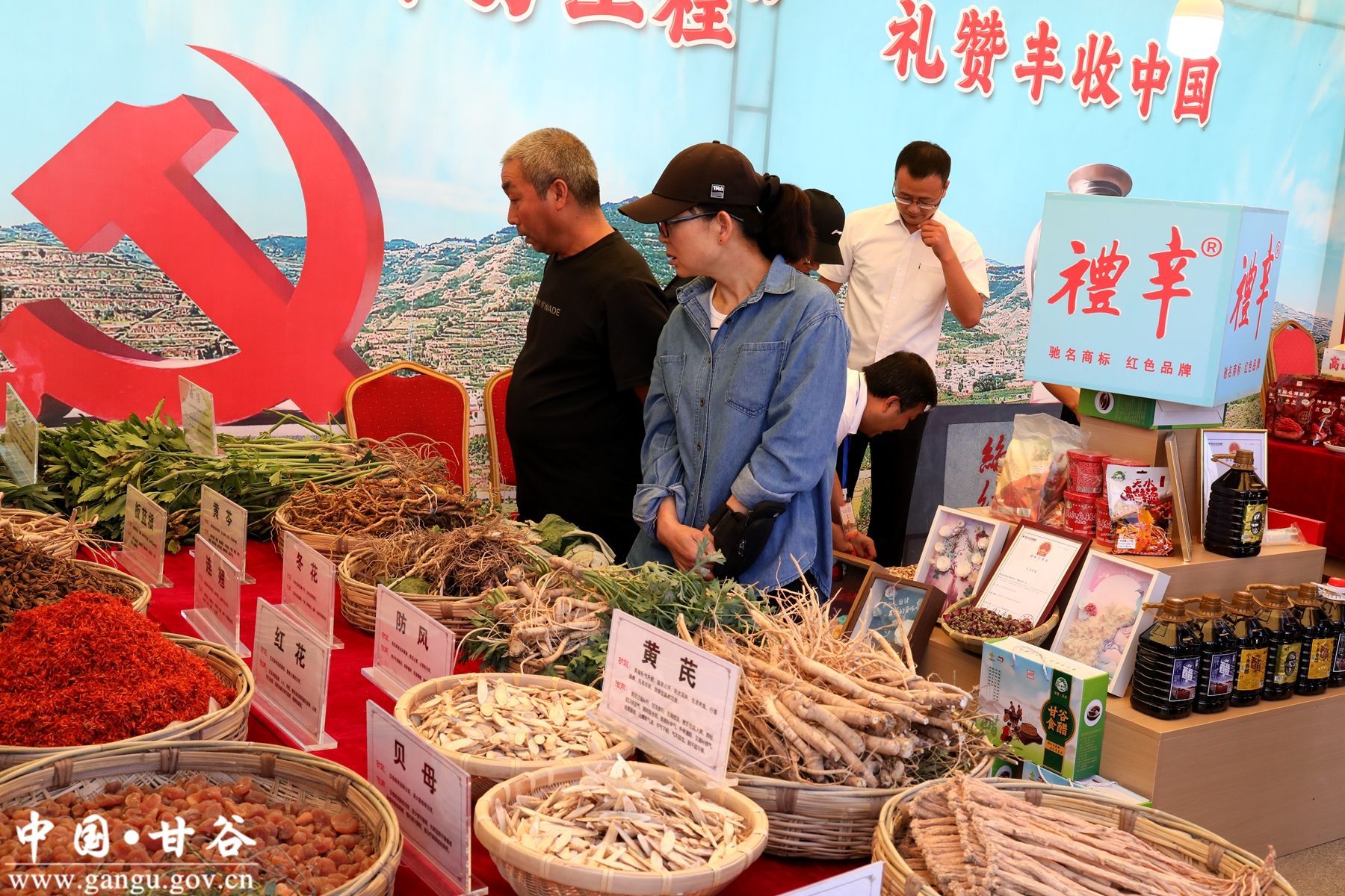 在展销区,最亮眼的就属甘谷“三宝”——辣椒、苹果和花椒,安远镇的玲珑小番茄、阳光玫瑰葡萄;六峰镇甜蜜产业人参果;礼辛镇的党参、黄芪等道地中药材;谢家湾乡的金丝皇菊;磐安镇的麒麟西瓜;大石镇的天然香醋……真的是尝不完、看不尽。除了甘谷15个乡镇的特色产品之外,还有秦安蜜桃、清水沙棘汁、张家川的草原牦牛肉等五县两区的当地特色产品种类繁多、琳琅满目,让庆丰收的人们体验了一番“农村赶大集”的滋味。