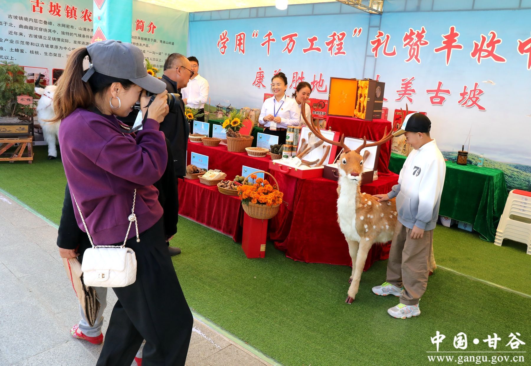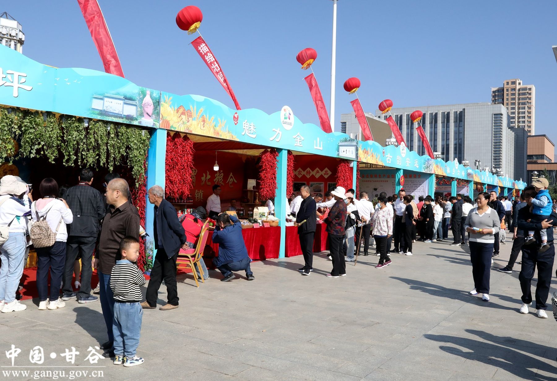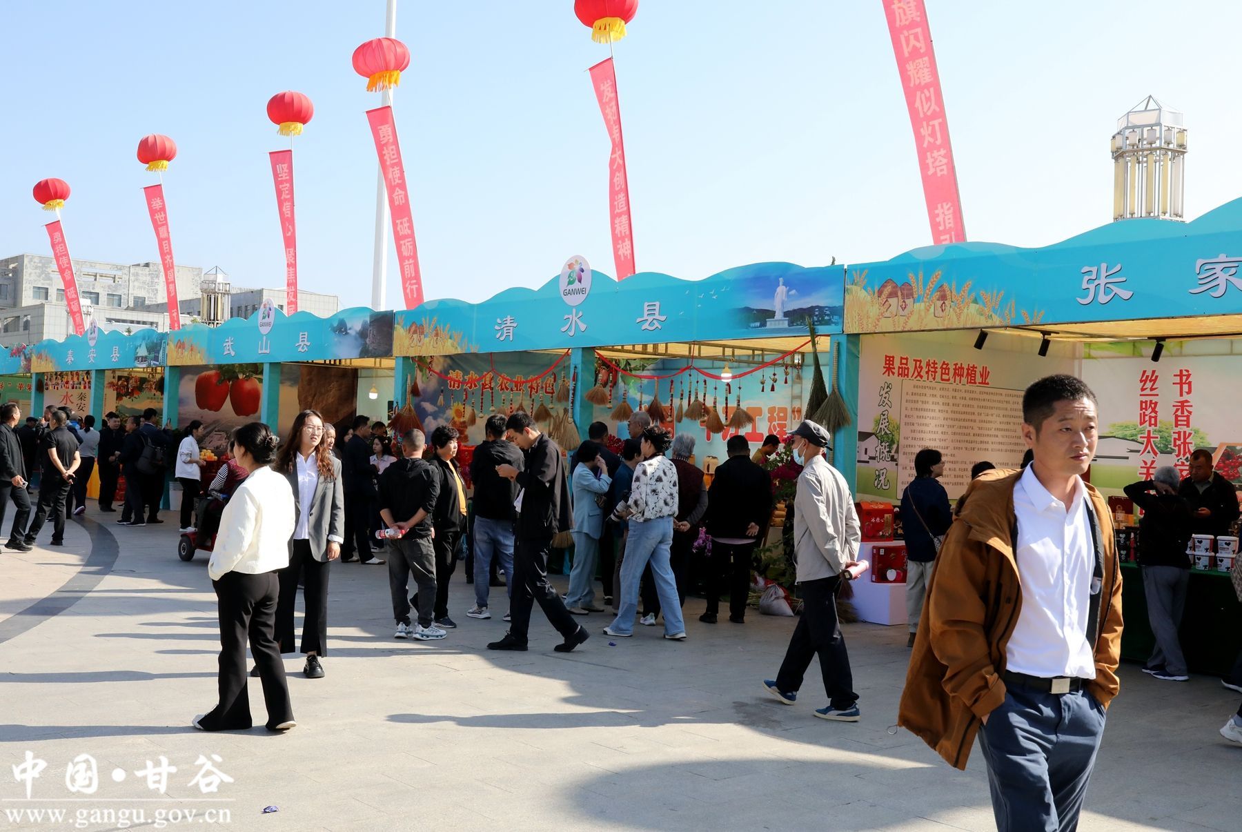 穿行在冀城广场农特产品展销区,一名名劳作的农民,一道道可口的美食,甘谷特有的文化元素、人文风情、食品品牌尽显眼前,让人的幸福感油然而生。广场内,一步一景,每个展区都各具特色,呈现不同乡风民情;所有展区串起来,就是一幅农民劳作、创造、丰收和幸福生活的壮美画卷,吸引游客纷纷合影留念。