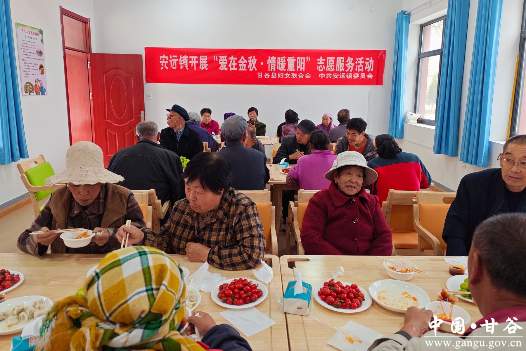 新甘谷讯【记者 王菲 实习记者 巩瑞鑫】九九重阳节,浓浓敬老情。为弘扬中华民族尊老、爱老、敬老、助老的传统美德,传递社会正能量,让老人们度过一个温馨祥和的重阳节,10月11日,甘谷县安远镇联合县妇联在安远镇巩川村互助幸福院开展“爱在金秋 情暖重阳”系列志愿服务活动。