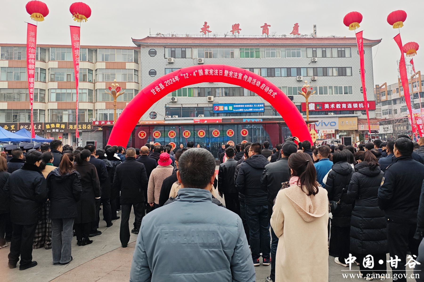 新甘谷讯【记者 王菲】12月2日,甘谷县2024年“12·4”国家宪法日暨宪法宣传周活动启动仪式在大什字广场举行。县委常委、政法委书记刘强出席并宣布宪法宣传周活动正式启动。副县长、县公安局局长李羽飞讲话。县法院院长石岚,县检察院检察长邵新建出席活动。县委全面依法治县守法普法协调小组成员单位、宪法宣传周专项活动和示范活动牵头部门及群众代表共计400余人参加活动。