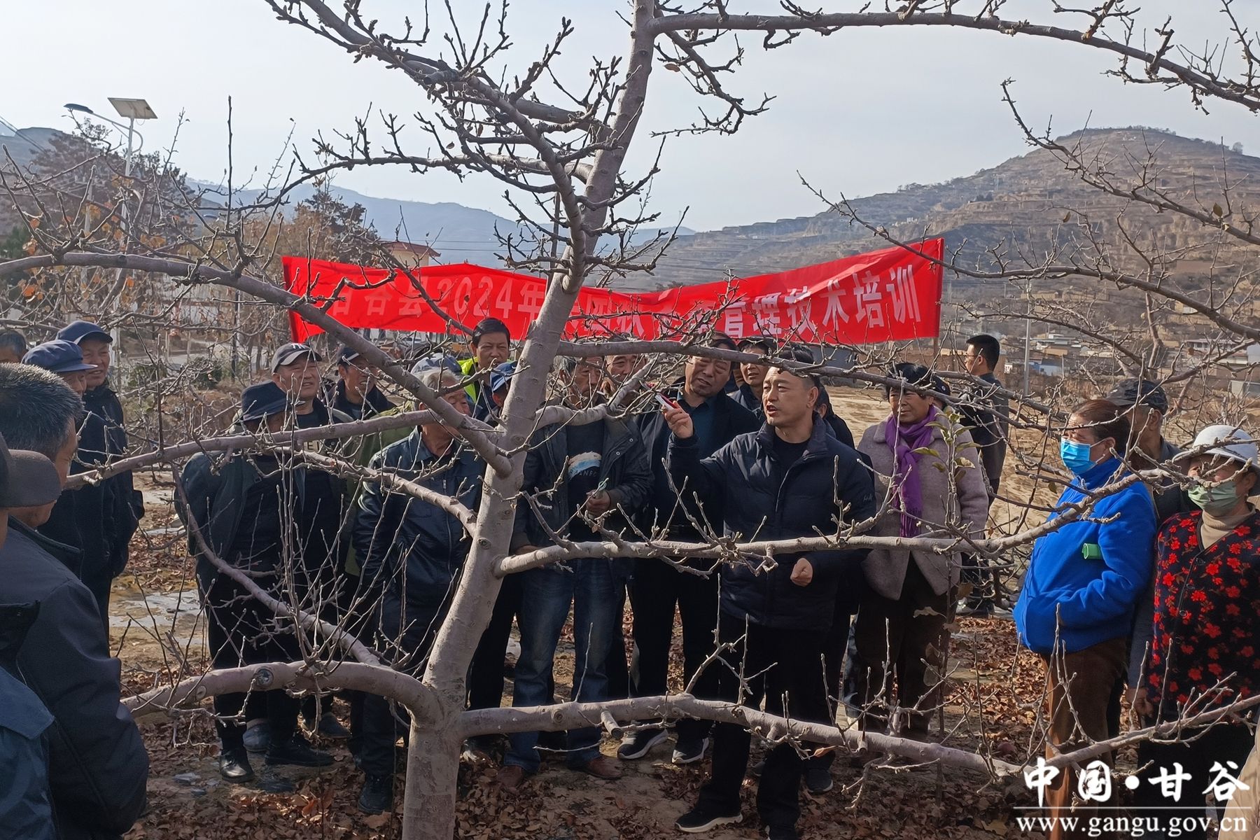新甘谷讯【记者 郭金龙】根据冬季果园管理技术要点和农民实际需求,12月5日,甘谷县果品产业服务中心技术人员深入到谢家湾乡永丰村,把最新的理论知识和技术送到家门口,为当地的果农开展苹果园冬季管理技术培训,抢抓果园冬季管理的好时机。