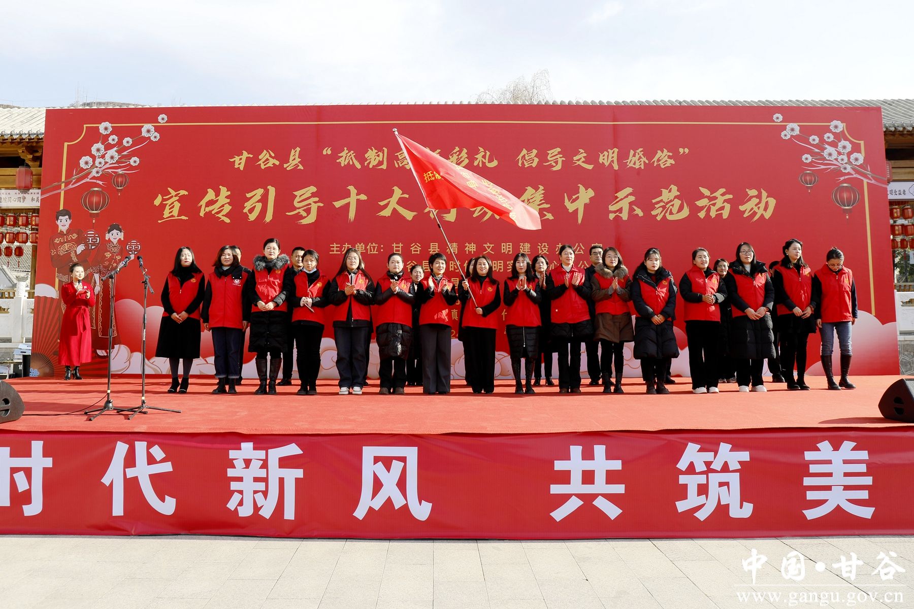 活动中,杨亚君为甘谷县抵制高额彩礼志愿劝导队举行授旗。县妇联负责人宣读了《甘谷县“抵制高额彩礼 倡导文明婚俗”倡议书》。活动同时邀请了白家湾乡蒜黄咀村的公益红娘、老年大学的金婚夫妇、县法律服务志愿服务队律师以及“百姓名嘴”宣讲大赛获奖者,通过现身说法、现场宣讲、专业讲解等方式,深入浅出地讲解了文明婚俗的重要性和积极意义,鼓励村民们自觉抵制高额彩礼、铺张浪费等不良习俗,树立健康、文明、节俭的婚姻观念。