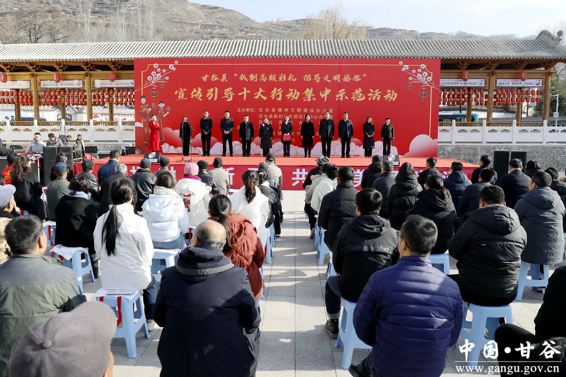 新甘谷讯【记者 颉凤】12月5日,甘谷县“抵制高额彩礼 倡导文明婚俗”宣传引导十大行动集中示范活动在武家河镇举行,县委常委、宣传部部长、县新时代文明实践中心办公室主任杨亚君出席活动并讲话,县人大常委会副主任杨晓涛、副县长霍艳平、县政协副主席李文定出席活动。