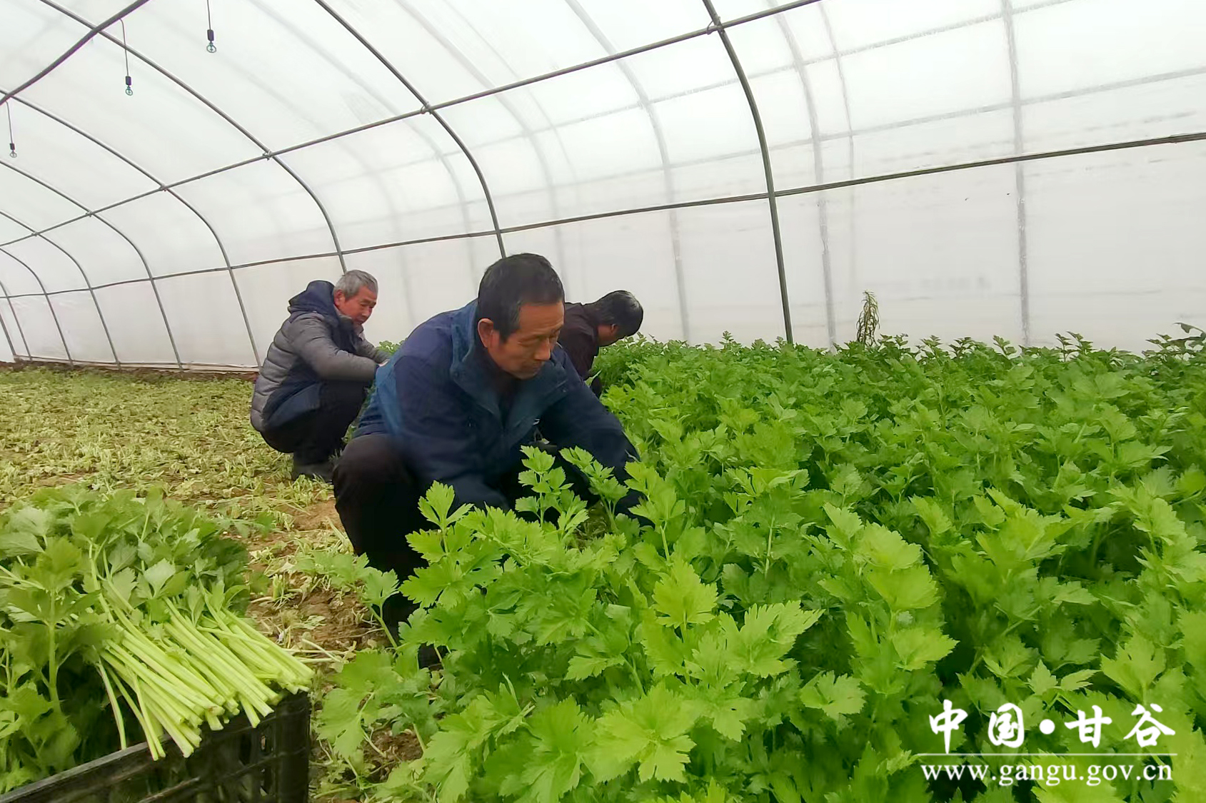 新甘谷讯【记者 王永吉】眼下正值初冬季节,甘谷县六峰镇苍耳王村的蔬菜大棚内却是绿意盎然,鲜嫩的芹菜迎来了大丰收。