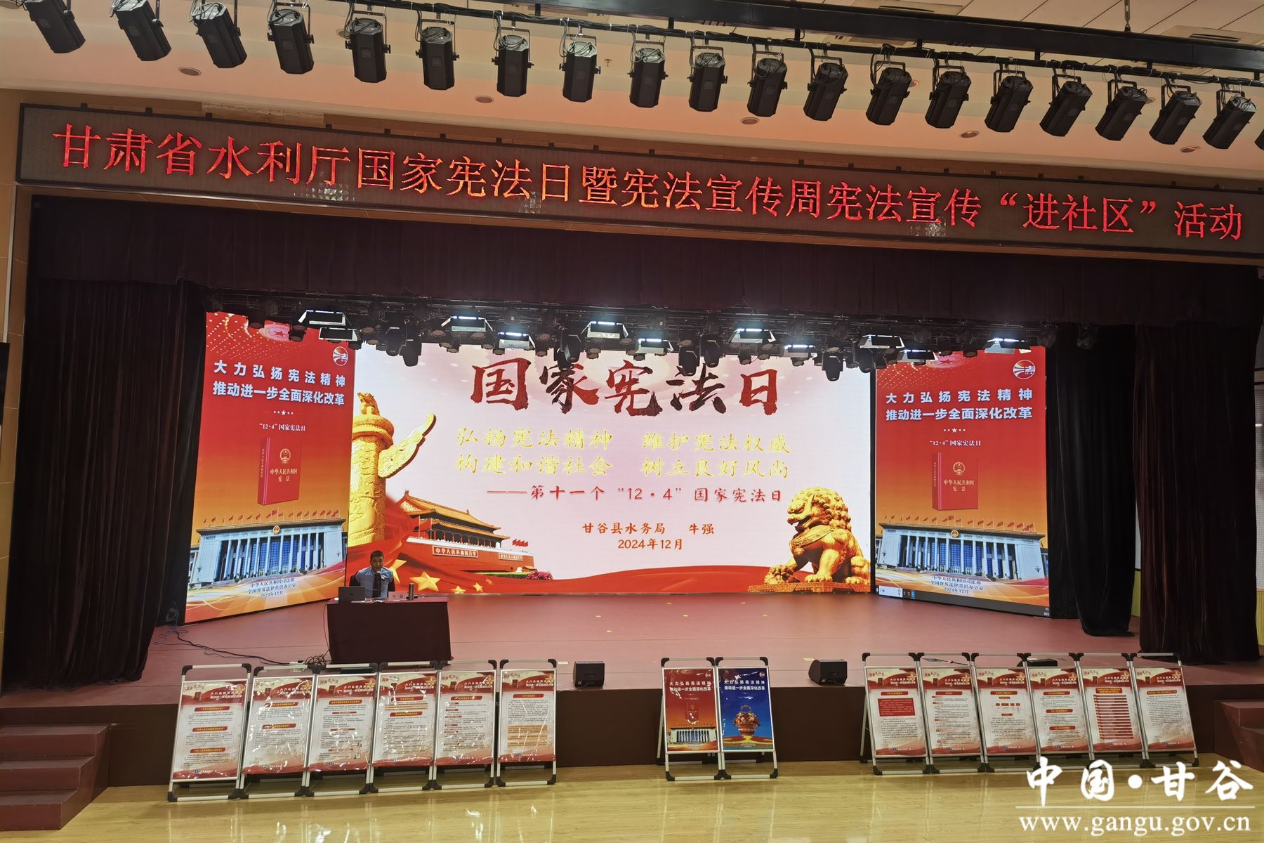 新甘谷讯【记者 颉定武】为深入学习贯彻习近平法治思想,加强宪法宣传教育,大力弘扬宪法精神,推动进一步全面深化改革。12月5日,省水利厅联合省妇女儿童服务中心和相关街道社区,举办了“12・4”国家宪法日暨宪法宣传周普法宣传讲座会,特邀请甘谷县水务局牛强同志,围绕宪法基本知识、今年“12・4”国家宪法日暨宪法宣传内容以及日常生活中法治思维和法治方式的提升等方面作了专题报告。