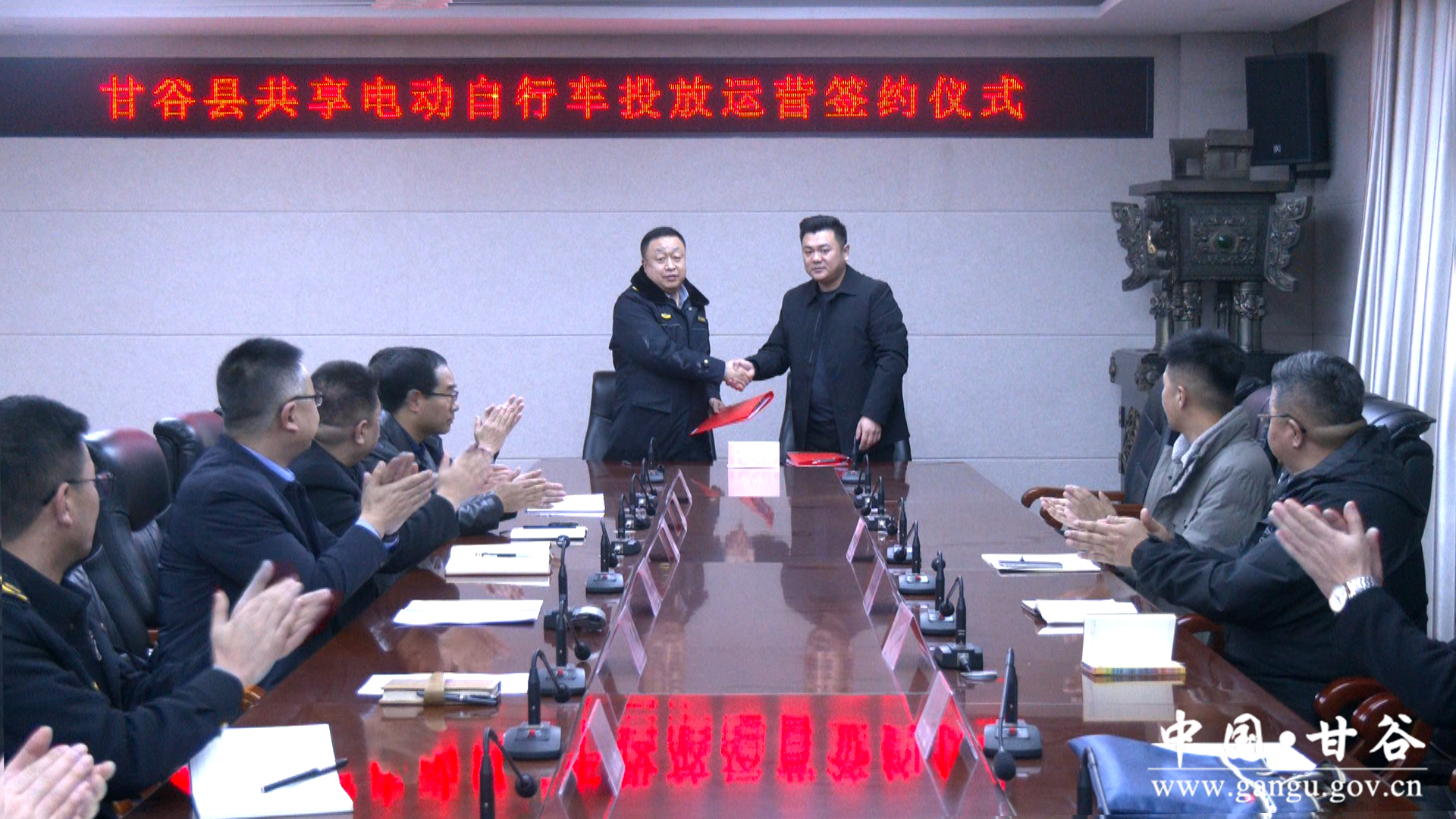 新甘谷讯【记者 王永吉】12月20日,甘谷县举行共享电动自行车投放运营签约仪式。甘谷县城市管理综合行政执法队分别与宁波喵走科技有限公司、杭州青奇科技有限公司负责人签订了投资协议。副县长、县公安局局长李羽飞出席仪式并讲话。