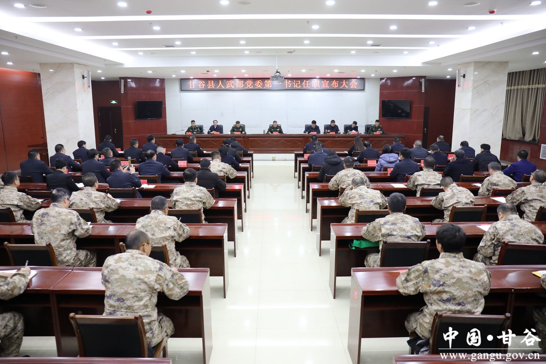 新甘谷讯【记者 谢映波】12月20日,甘谷县人武部党委第一书记任职宣布大会召开。市委常委、天水军分区大校司令员宋英武宣读任职命令并颁发了任职命令状。县委书记、县人武部党委第一书记孙忠平作了发言。