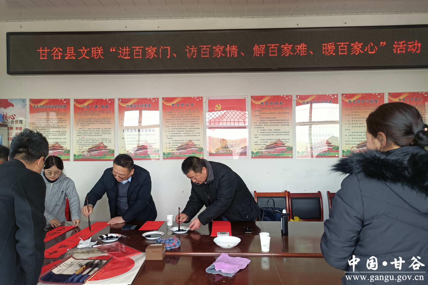 甘谷县把开展好“进百家门、访百家情、解百家难、暖百家心”主题活动作为全面落实中央和省、市委关于“三农”工作部署要求,增强基层党组织政治功能和组织功能,在推动驻村第一书记和工作队履职尽责上下功夫,在打通联系服务群众“最后一公里”用真情,积极回应群众关切,把惠民生、暖民心、顺民意的工作做到群众心坎上,把党的正确主张变成群众拥护党组织的自觉行动。