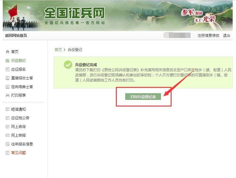 登录或注册完后,进入登记,点击“开始兵役登记”: