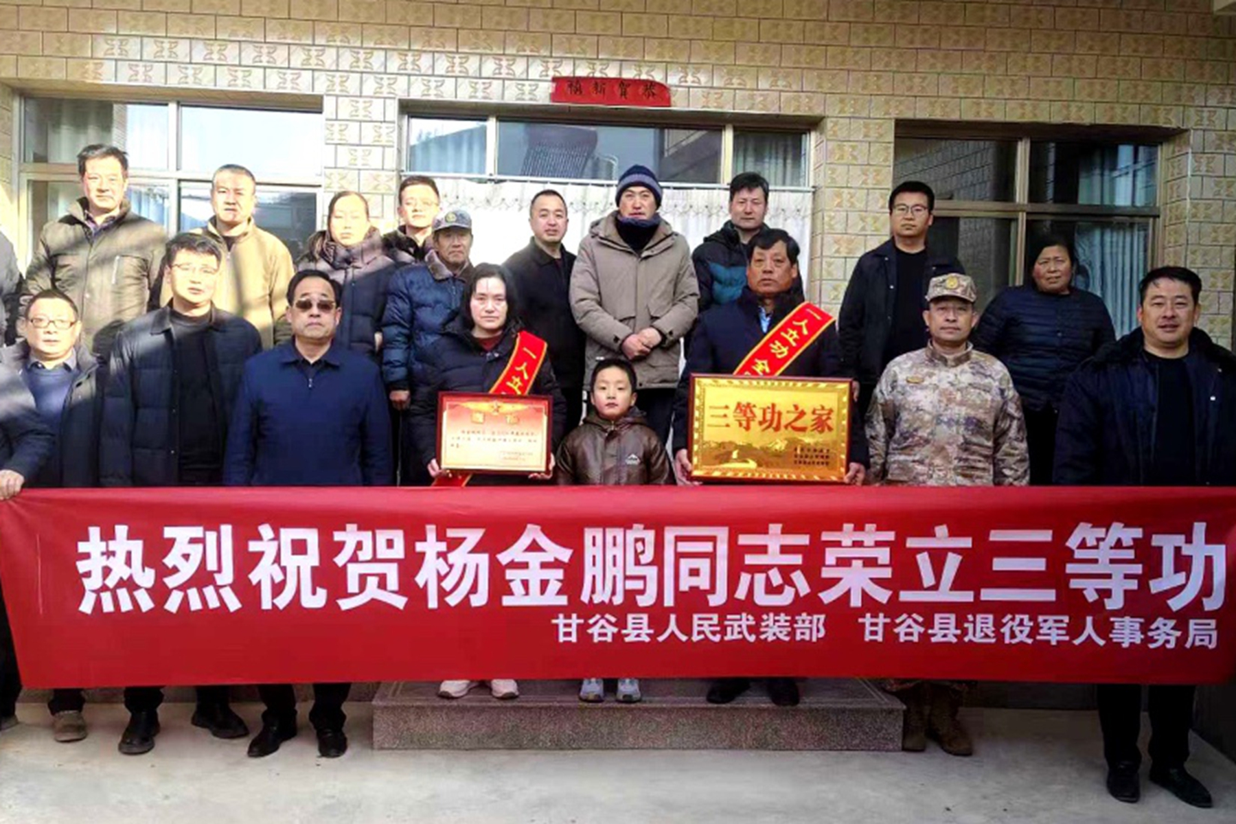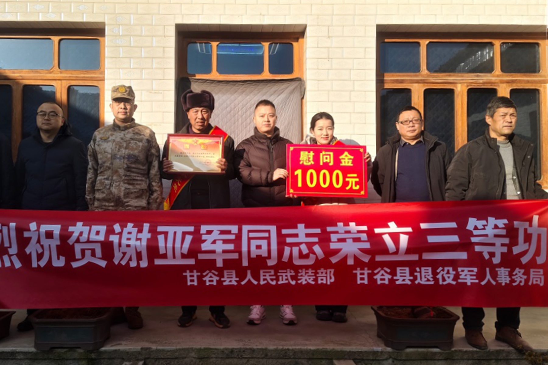 为进一步弘扬拥军优属的光荣传统,增强军人军属的荣誉感和自豪感,近日,县退役军人事务局联合县人武部及相关乡镇退役军人服务站,赴新兴镇、谢家湾乡、安远镇、大庄镇4个乡镇,为荣立三等功的现役军人家庭送去立功受奖喜报,在新年伊始为军属送上党和政府的关怀。