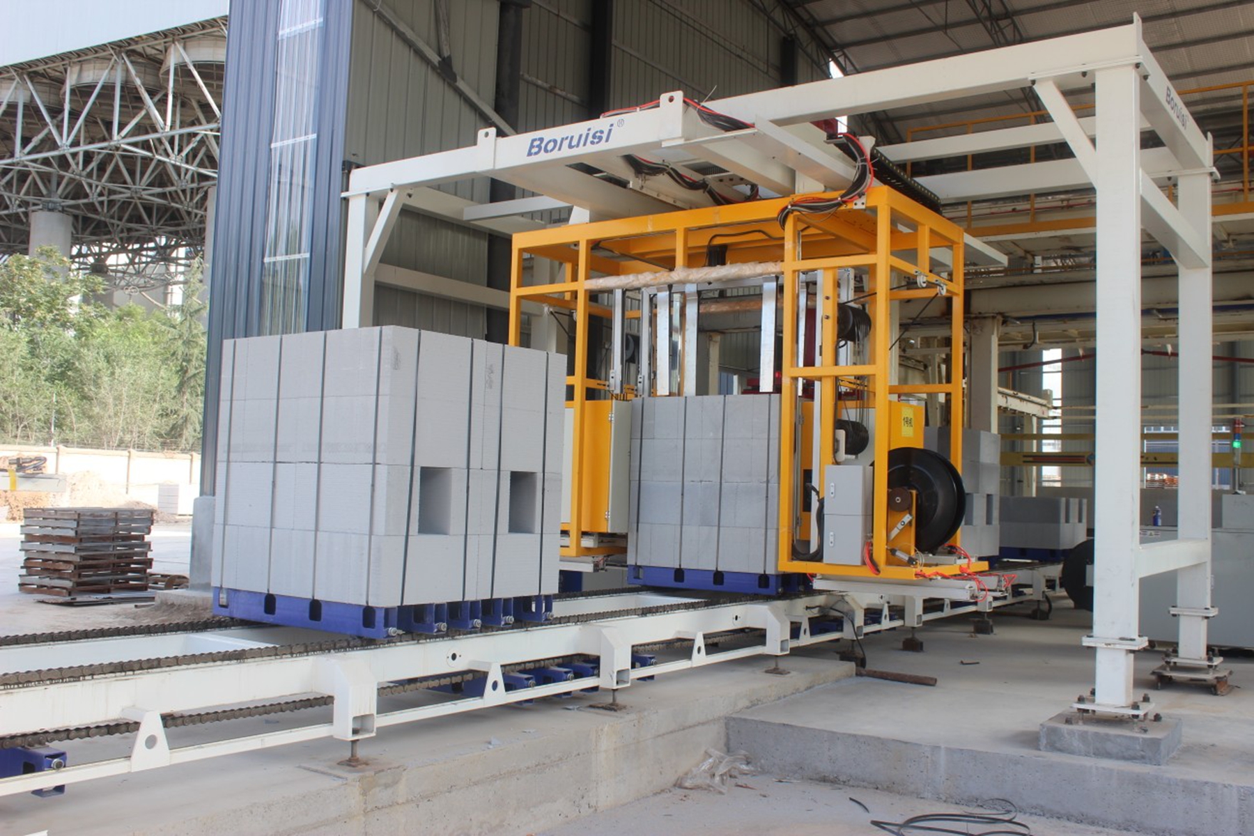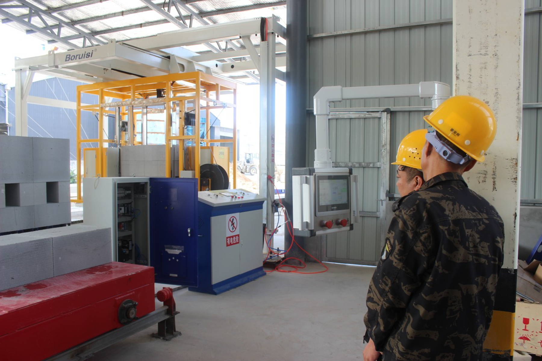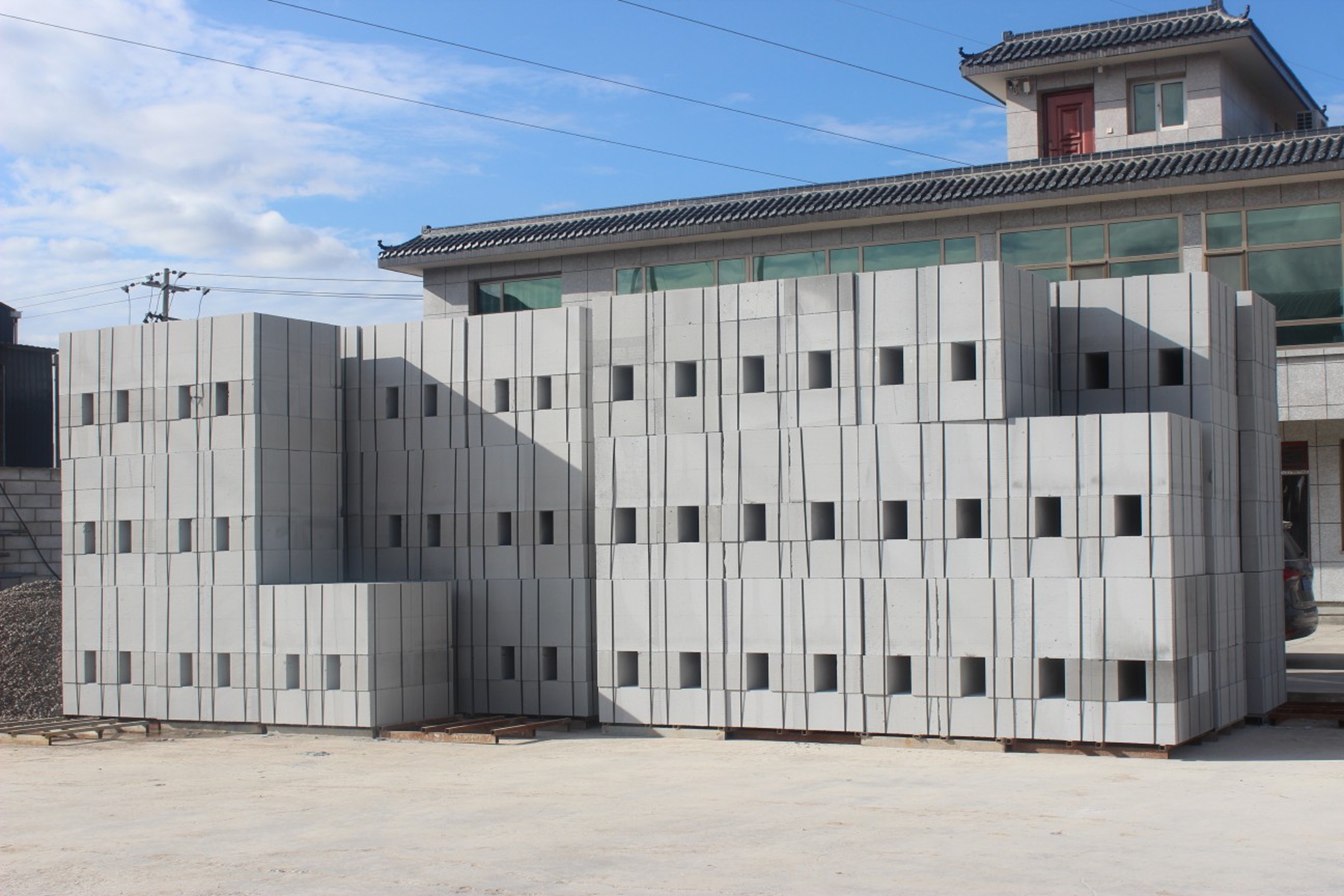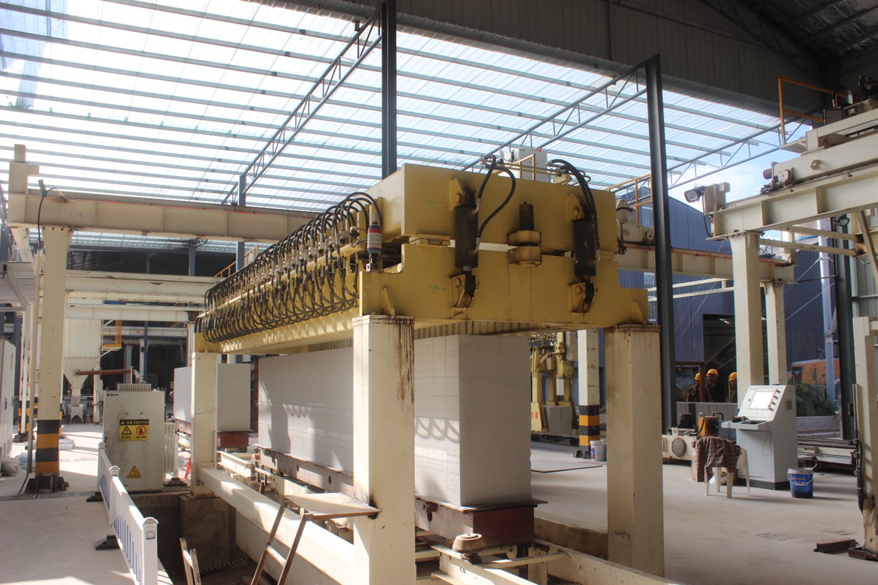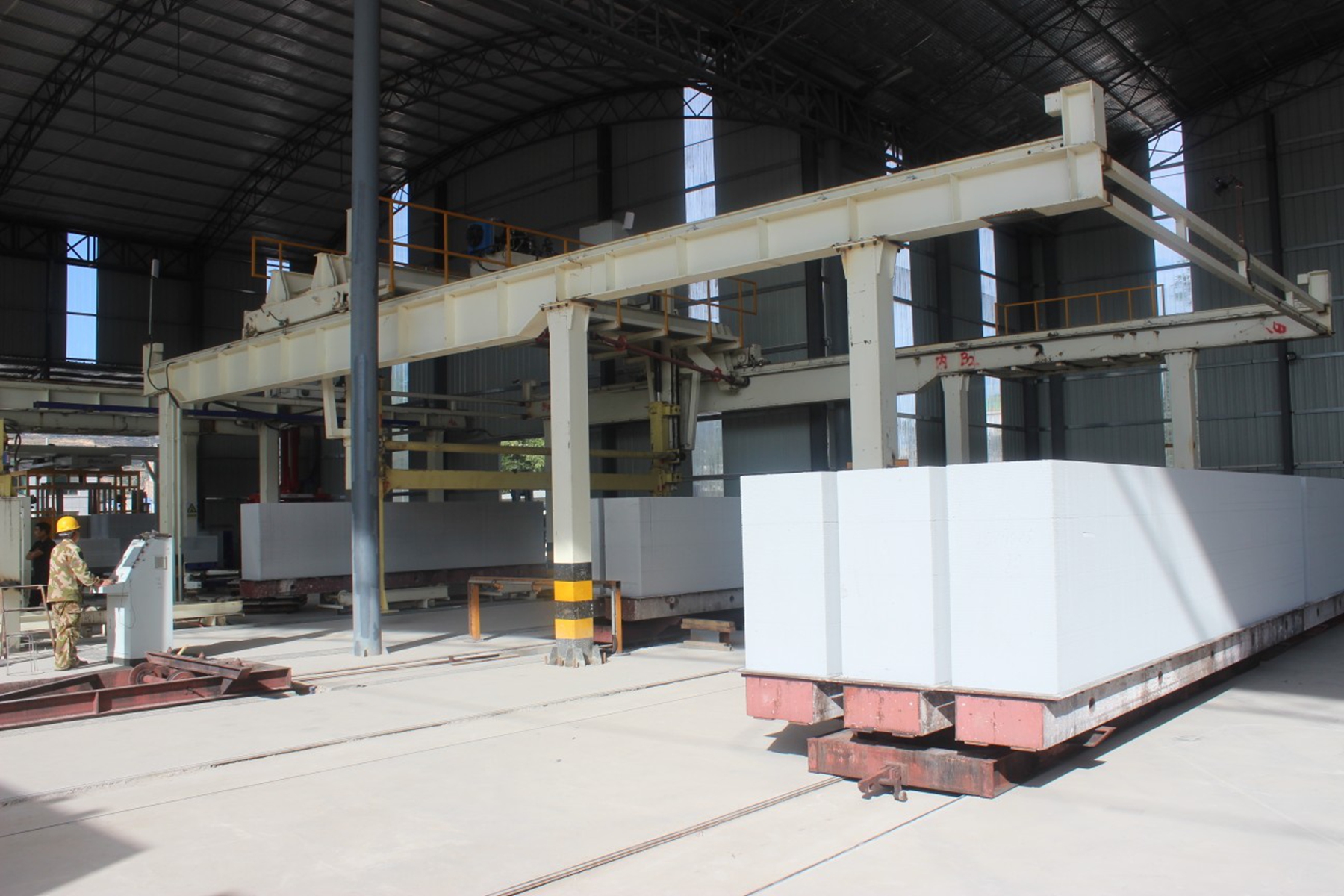 此次升级改造是企业响应甘谷县“工业主导型”发展定位与磐安工业示范园提质增效目标的生动实践,总投资达3000万元,主要聚焦设备更新与厂房扩建两大核心。在硬件建设上,拆除部分原有厂房并扩建5000平方米,为新设备落地与产能扩容提供空间;在生产线智能化改造上,引进加气混凝土砌块全自动生产线1套、板材生产线1条、全自动打包线2条,并配套7条蒸压釜,覆盖浇筑、静养、切割、蒸养、打包全生产流程,实现从原料加工到成品出库的“全自动、智能化、精细化”操作。