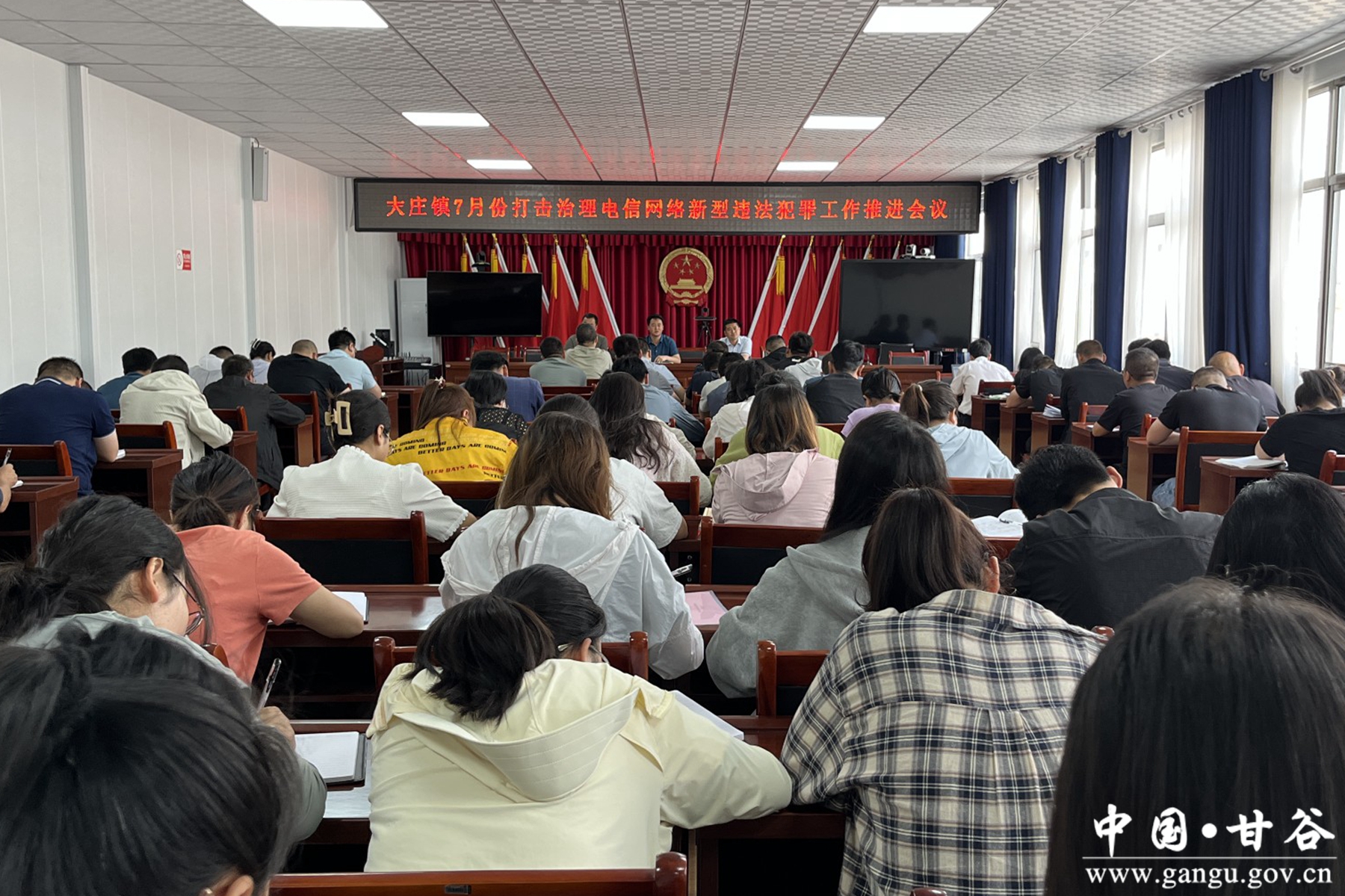 7月2日,大庄镇召开打击治理电信网络新型违法犯罪工作推进会议。会议由镇党委书记刘彦文主持,全体科级领导干部、各村党支部书记、各村负责人及文书共计84人参加会议。