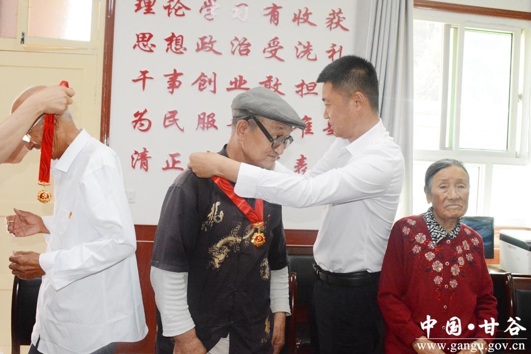 当天上午,9名党龄50年以上的老党员在家人或村干部的陪同下来到乡政府,党委书记郑博带领班子成员在党委会议室隆重接待了老党员,向他们长期以来做出的贡献表示感谢,并向他们颁发佩戴了“光荣在党50年”纪念章。随后,全体在家科级干部同老党员一起合影拍照留念。