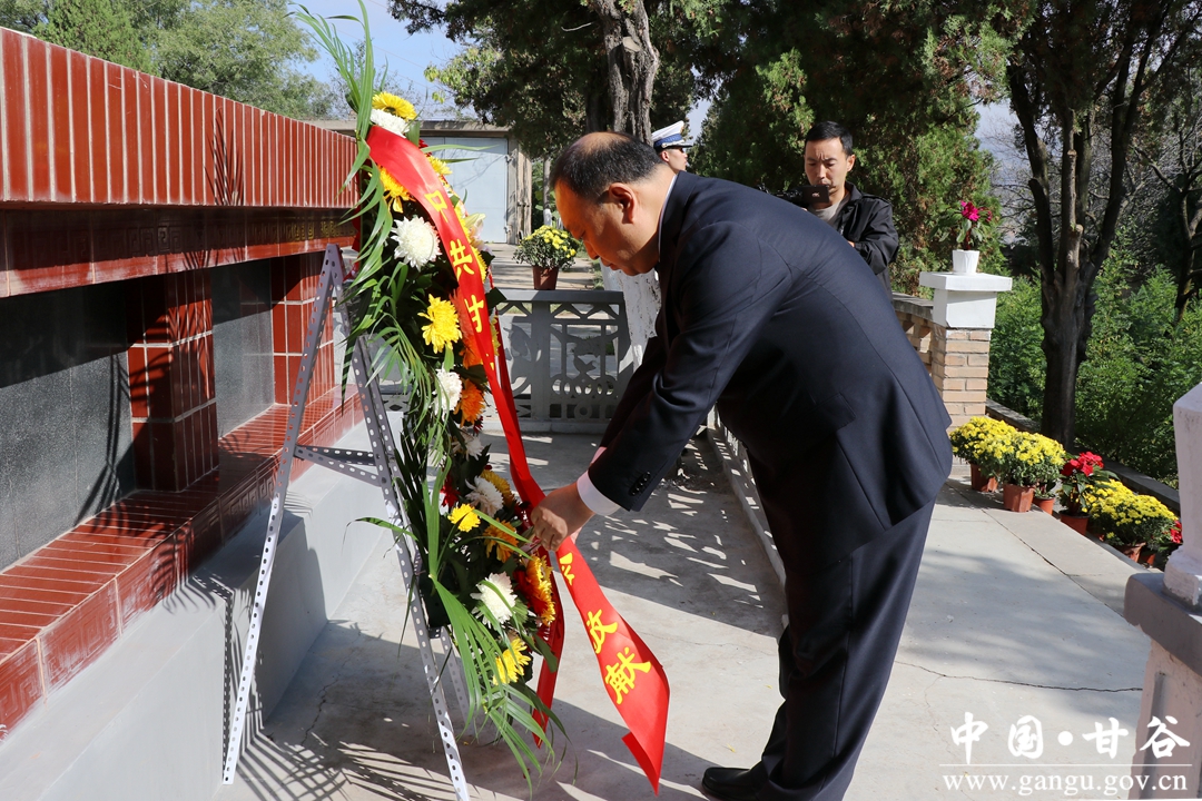 (县委书记吴健代表中共甘谷县委敬献花篮)