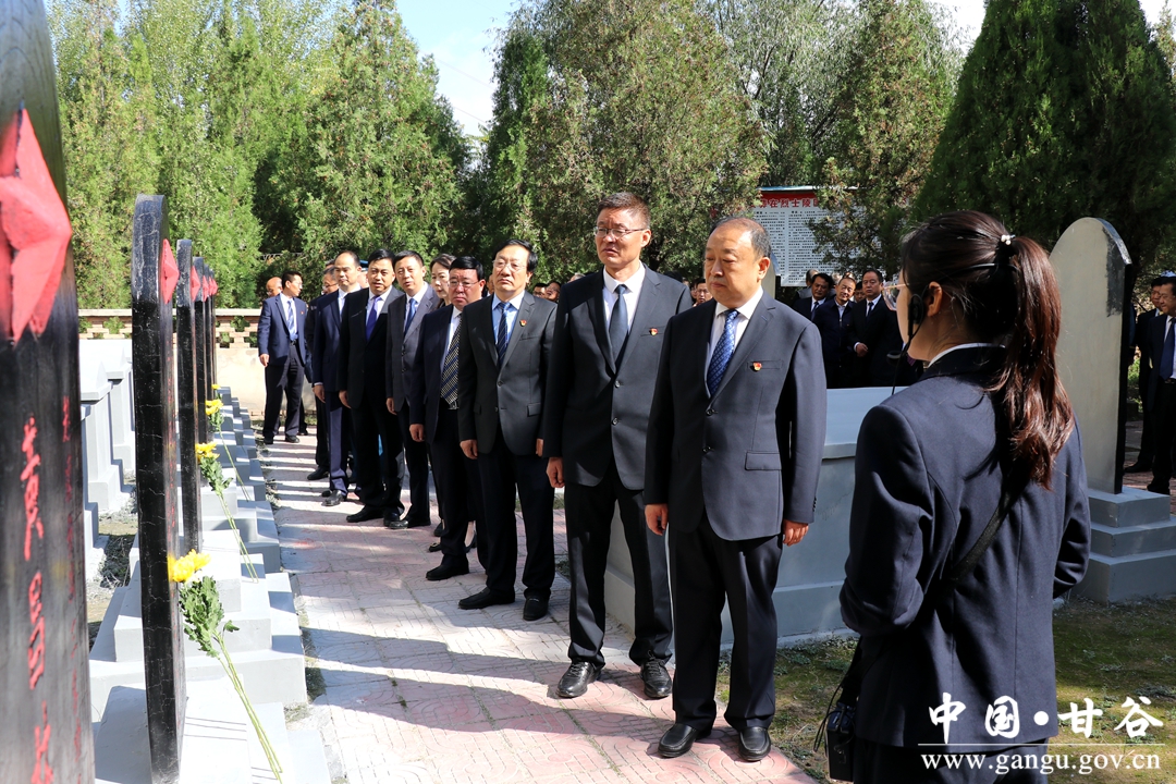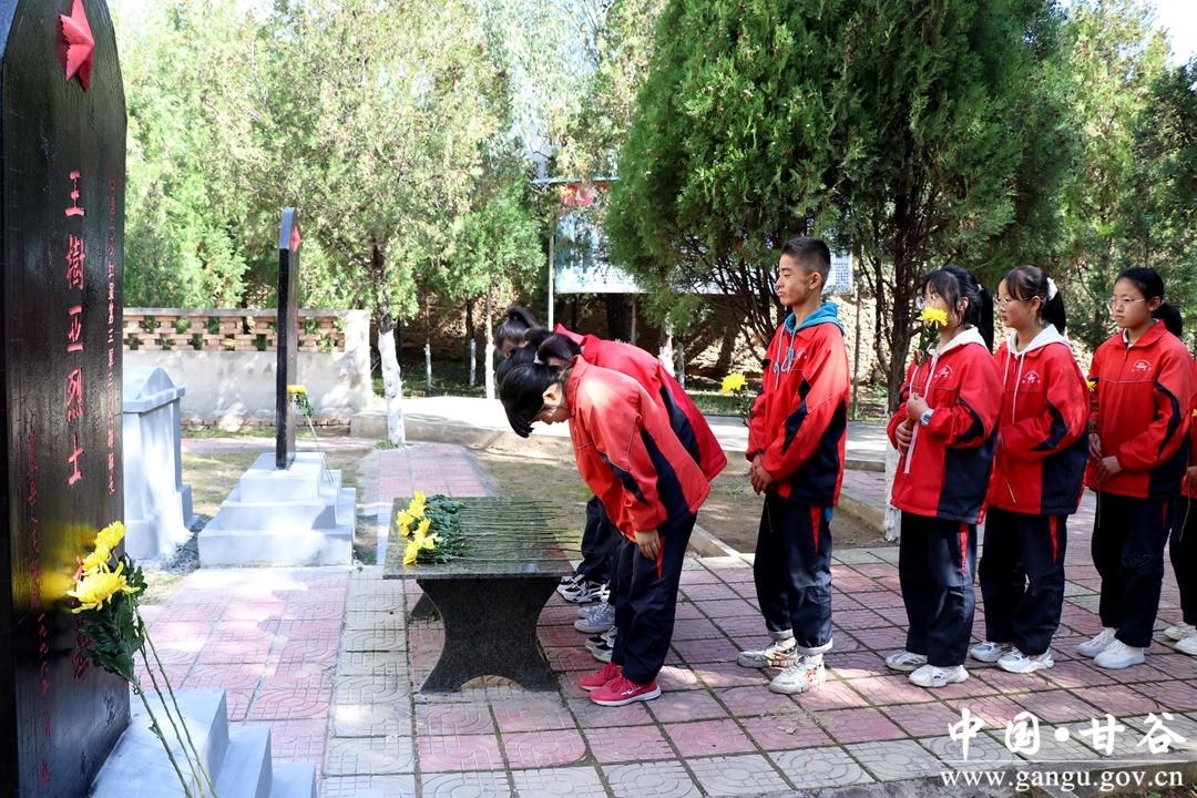 随后,参加活动的人员手持鲜花,怀着崇敬的心情,缓步前行,依次走进烈士陵园,敬献鲜花,相继绕碑瞻仰,以表达对先烈们的缅怀之情。大家表示,将继承先烈遗志,赓续红色血脉,弘扬革命精神,不忘初心,牢记使命,攻坚克难,砥砺奋进,为加快建设幸福美好新甘谷而不懈奋斗。