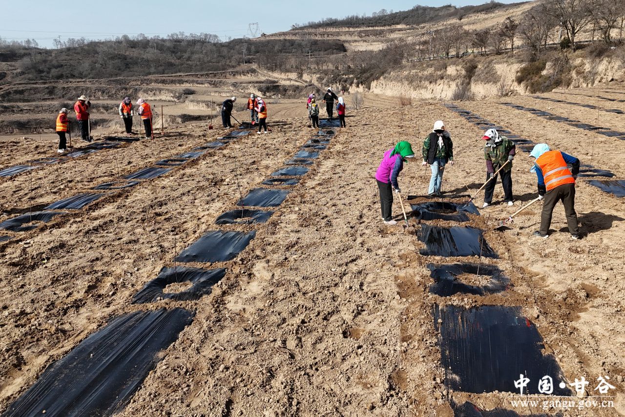 栽下的是树苗,孕育的是希望。赵窑村村党支部书记杨爱红穿梭在人群中,一边指导农户进行覆膜保墒,一边动员农户抢抓春耕黄金期,全力冲刺建园任务。杨爱红说:“我们积极动员村内农户,‘能改则改,应改尽改’,选用天水本地品种,由专业施工队统一施工,每亩施生物有机肥和菌肥改良土壤,施工完成后由农户进行日常管理。”三分种,七分管。杨爱红坚信,只要大家用心经营,这片园子必将在今后几年成为乡亲们增收致富的“金饭碗”。
