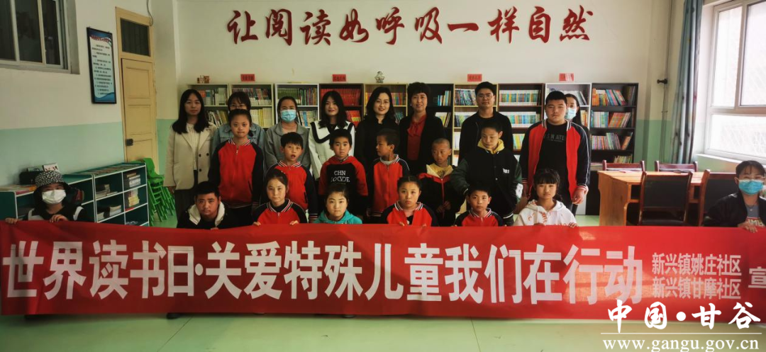 温馨四月,春风和煦;阳光美好,书韵飘香。4月23日,新兴镇组织姚庄社区、甘摩社区与甘谷县特殊教育学校共同开展了“书香陇原·宣传周”全民阅读暨“世界读书日·关爱特殊儿童 我们在行动”活动,通过“大手拉小手”的互动阅读,为孩子们打开了一片知识的新天地,用阅读的阳光温暖了一颗颗幼小的心灵。