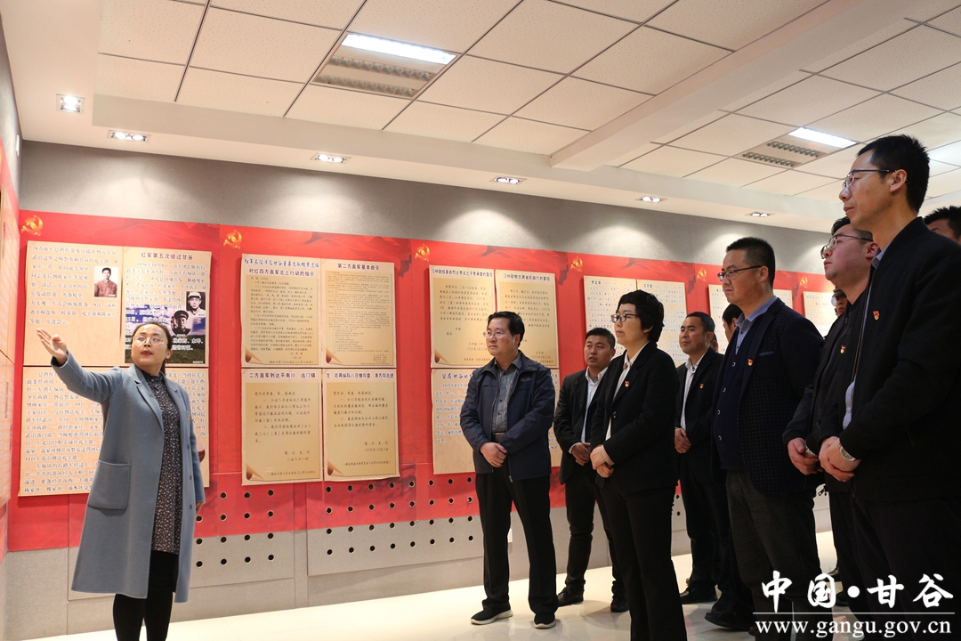 随后全体党员干部参观了红军长征纪念馆,认真听取工作人员介绍,不时驻足凝视,详细了解红军五过甘谷的光辉历史,真切感受党的初心使命,汲取前行力量。在庄严的党旗下,全体党员举起右手,重温入党誓词,宣誓将红军不畏艰险、勇往直前的精神继续传承下去。