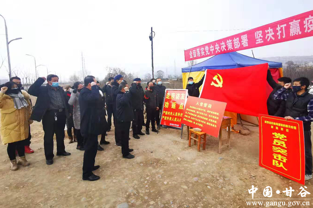 “我志愿加入中国共产党,拥护党的纲领,遵守党的章程,履行党员义务……”2月7日上午,新兴镇全体党员干部冲锋“疫”线,在各行政村、社区疫情监测点,面向党旗,高举右拳,重温入党誓词,进一步激励引导全镇广大党员干部在防疫阻击战中挺身而出、敢于担当、敢拼敢战,更加坚定战胜新型冠状病毒感染疫情的信心和决心。